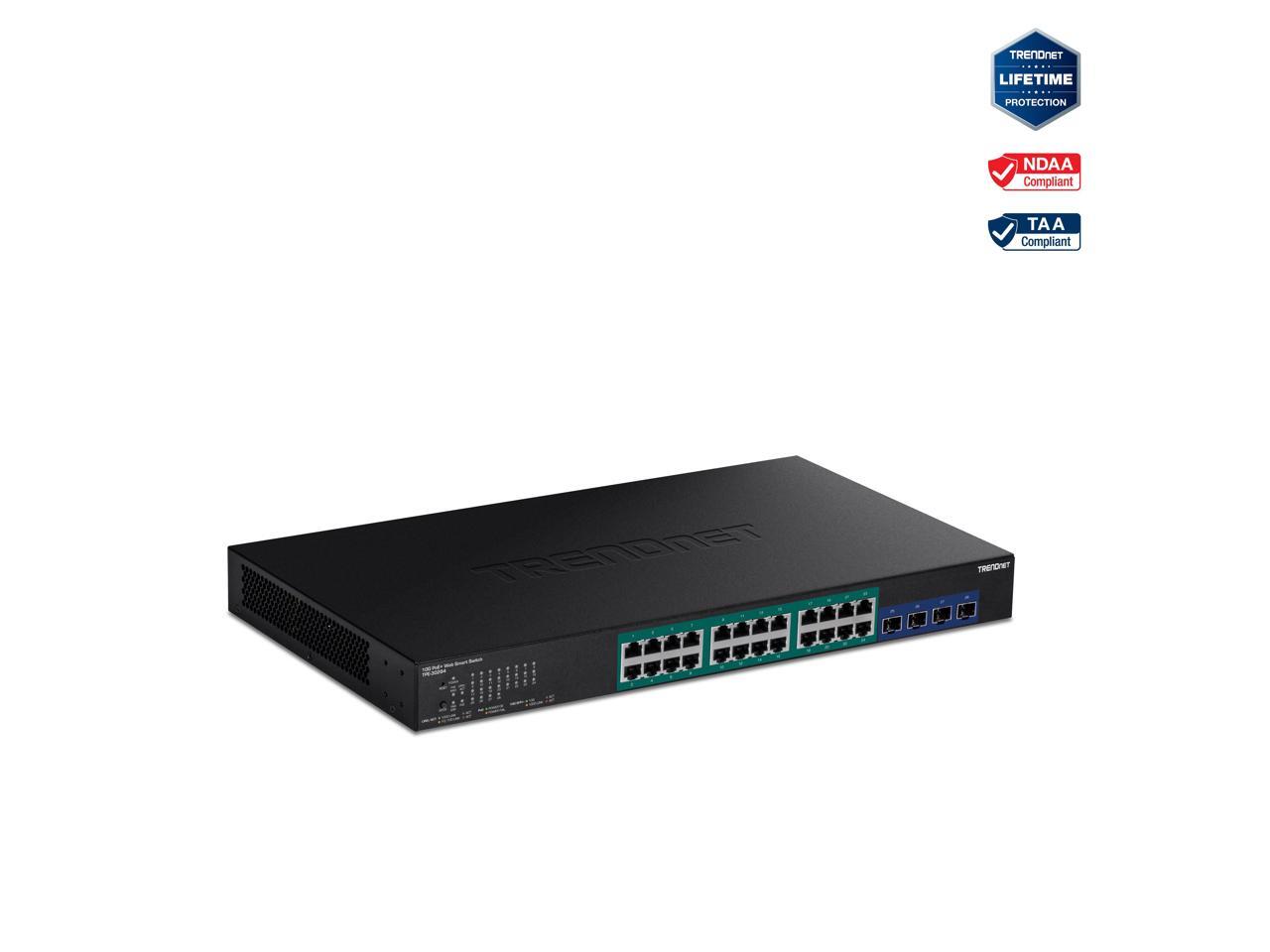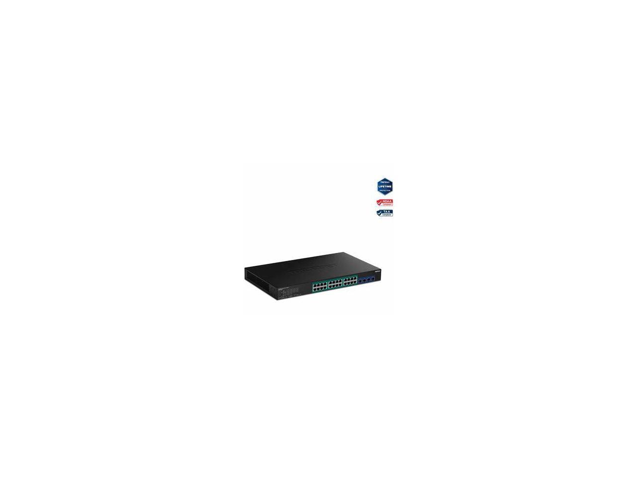 TRENDnet 28-Port Gigabit Web Smart PoE+ Switch with 24 Gigabit PoE+ Ports; TPE-30284; 4 x 10G SFP+ slots; 370W PoE power;VLAN; QoS; LACP; IPv4/IPv6 Static Routing