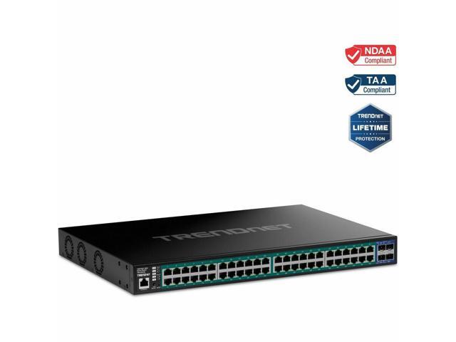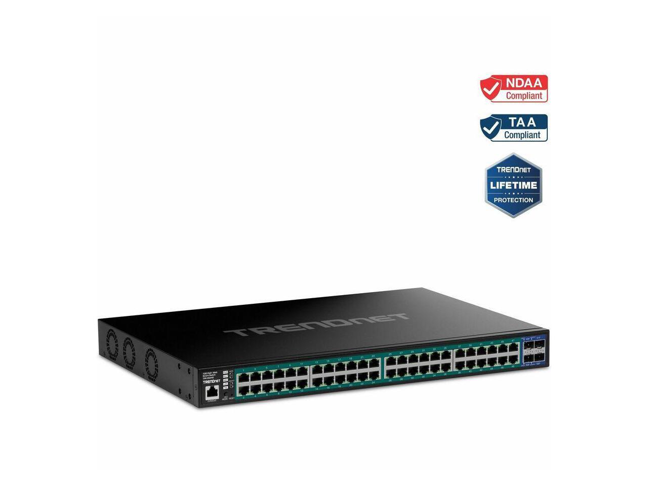TRENDnet 52-Port Gigabit Web Smart PoE+ Switch with 10G SFP+ Ports, TPE-3524S, 48 x Gigabit PoE+ Ports, 4 x 10G SFP+ Ports, 410W PoE Power Budget, Lifetime Protection, Black