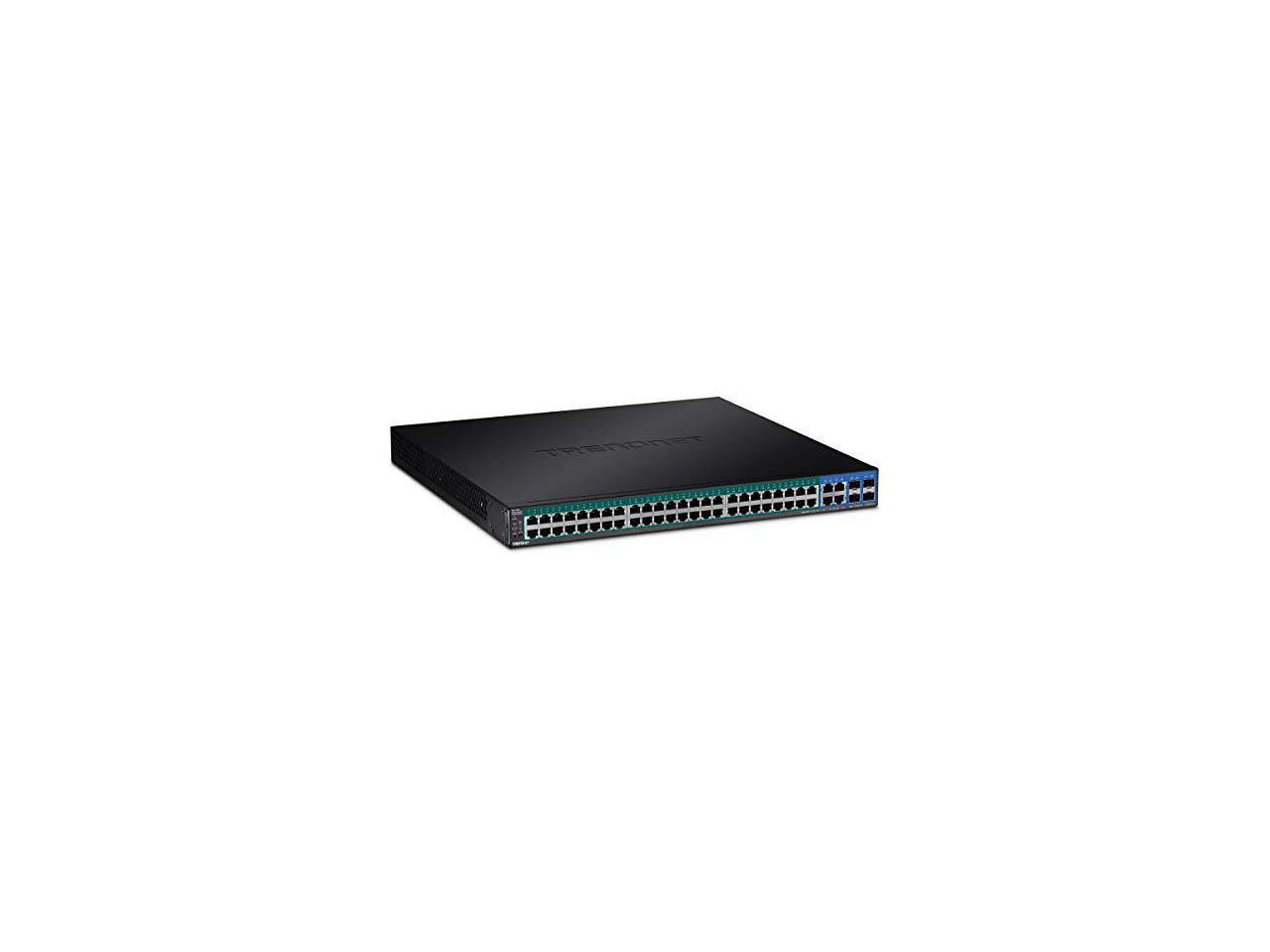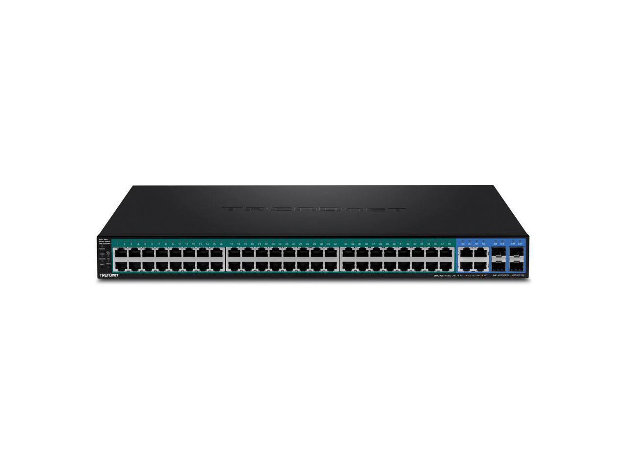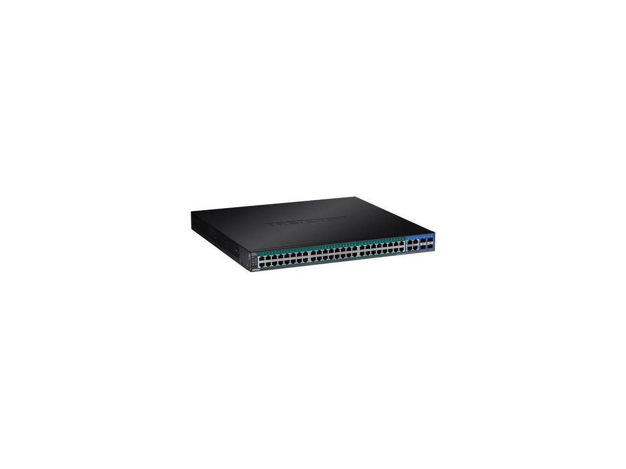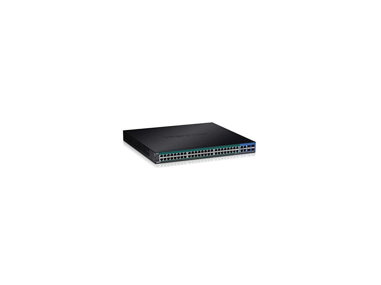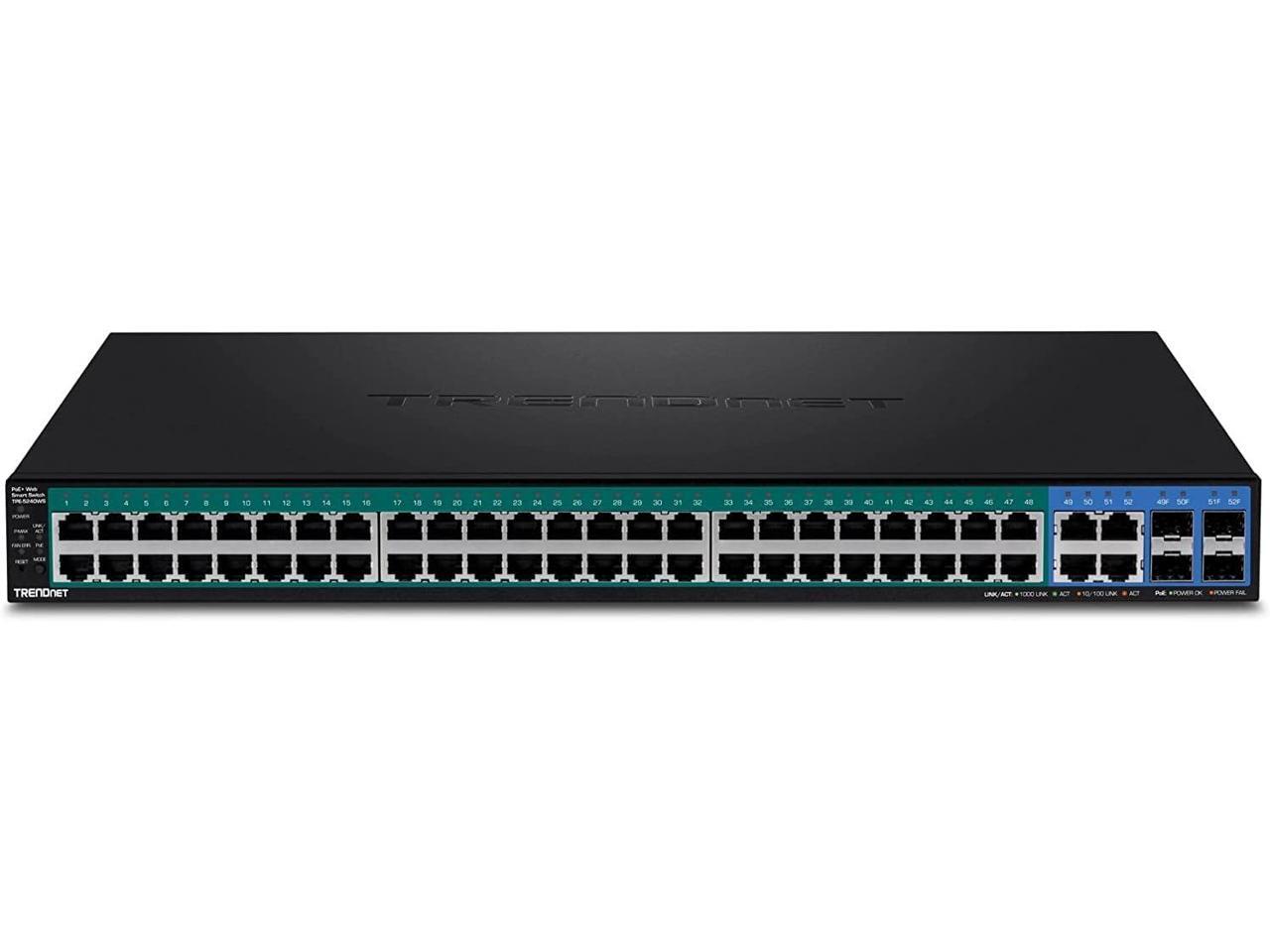 TRENDnet 52-Port Gigabit Web Smart PoE+ Switch, 48 Gigabit PoE+ Ports, 4 Shared Gigabit Ports (RJ-45 Or SFP), 370W PoE Power Budget, 104Gbps Switching Capacity, Lifetime Protection, Black, TPE-5240WS