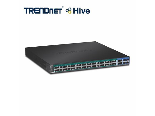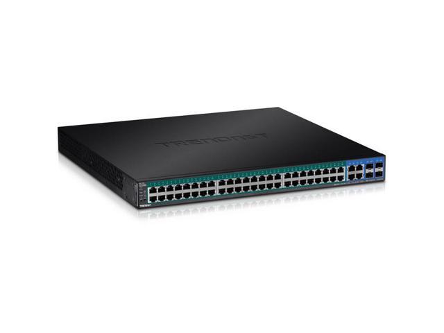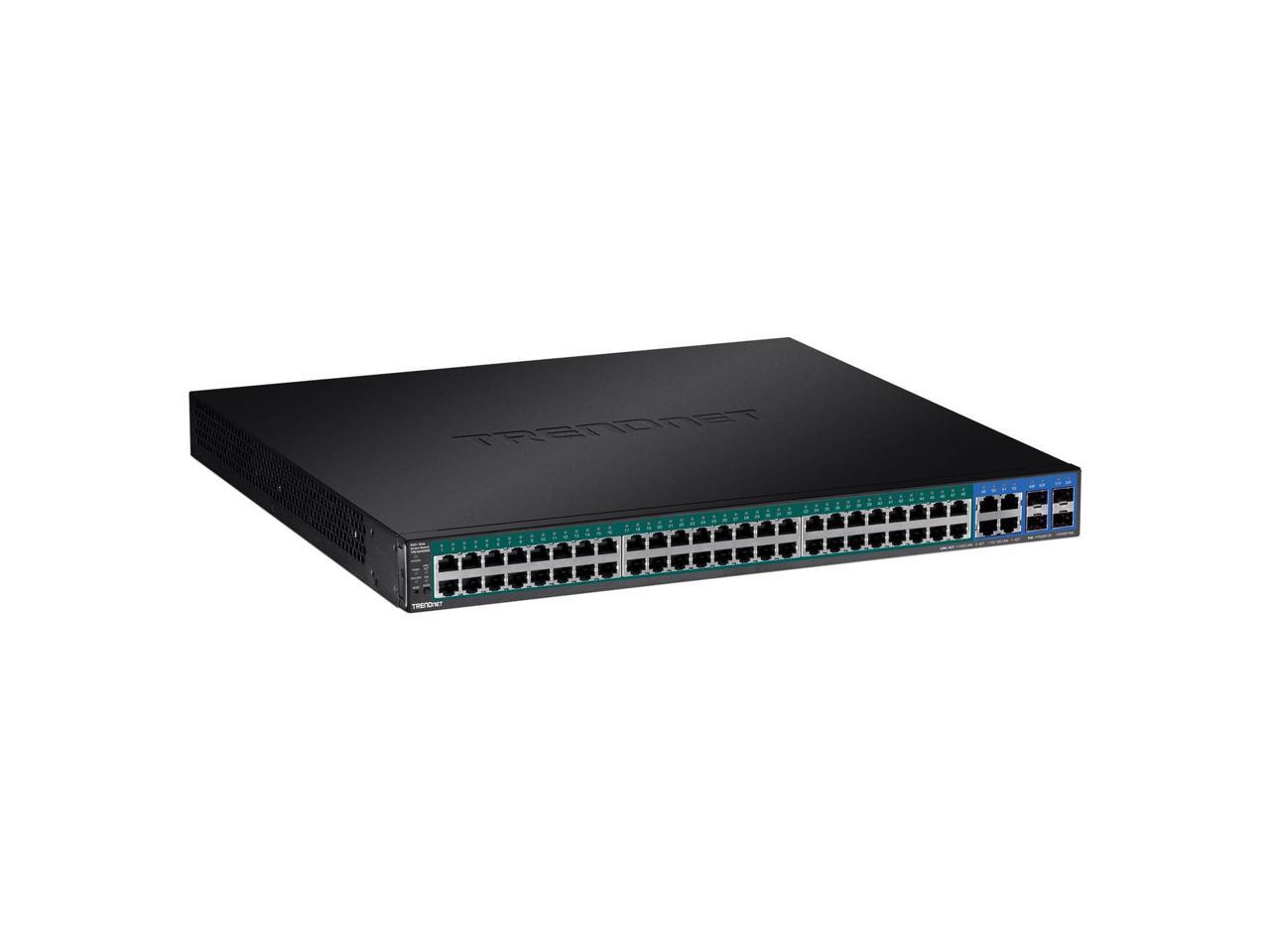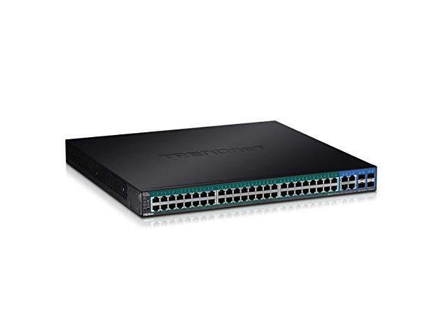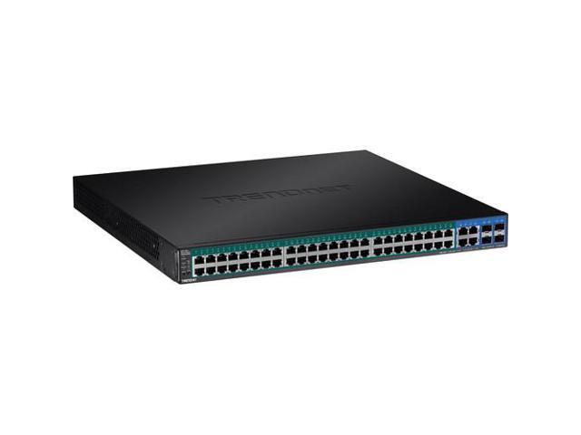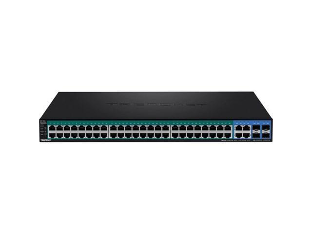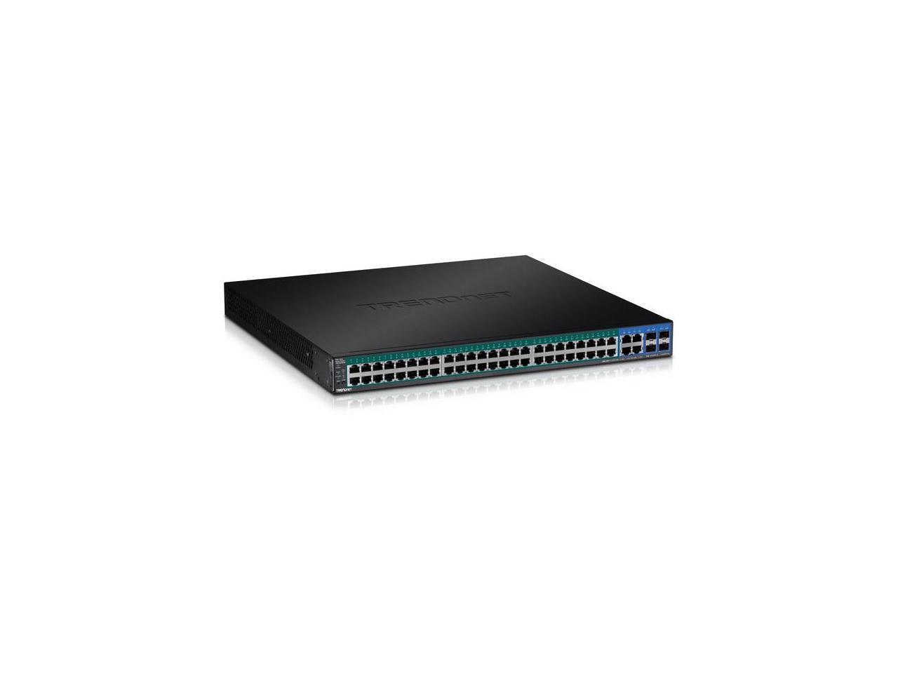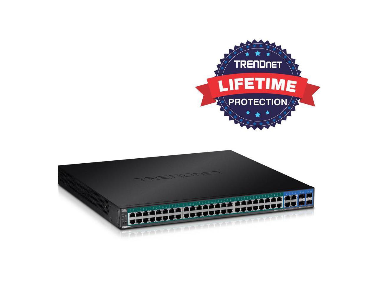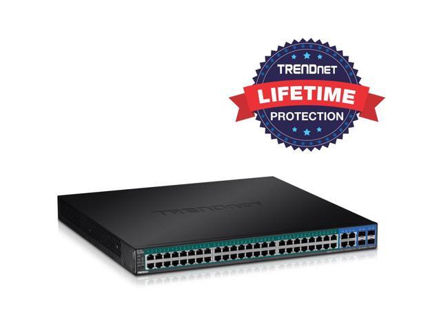 TRENDnet 52-Port Gigabit Web Smart PoE+ Switch, 48 Gigabit PoE+ Ports, 4 Shared Gigabit Ports (RJ-45 Or SFP), 370W PoE Power Budget, 104Gbps Switching Capacity, Lifetime Protection, Black, TPE-5240WS