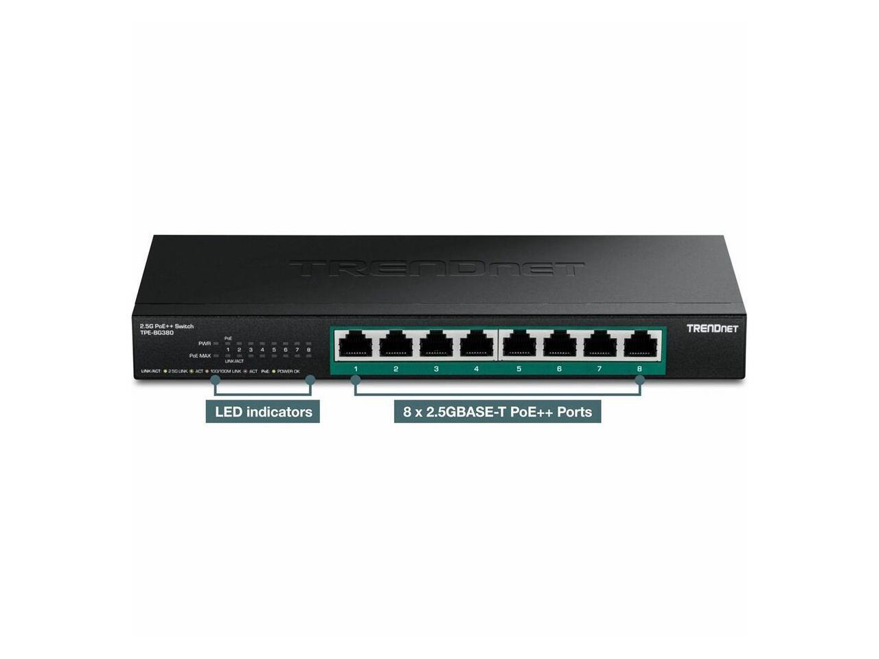 TRENDnet 8-Port 2.5G PoE++ Switch, TPE-BG380, 8 x 2.5GB PoE++ Ports, 230W Poe Power Budget, 40Gbps Switching Capacity, NDAA + TAA Compliant, Lifetime TRENDnet Protection