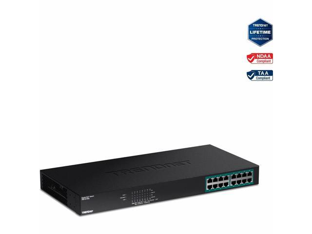 TRENDnet 16-Port Gigabit PoE+ Switch, 16 x Gigabit PoE+ Ports, 246W PoE Power Budget, 32 Gbps Switching Capacity, Desktop Switch, Ethernet Network Switch, Metal, Lifetime Protection, Black, TPE-TG160g