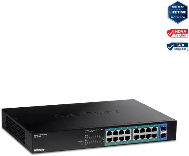 TRENDnet's Unmanaged Gigabit PoE Switches provide high-bandwidth performance, ease of use, and reliability. These IEEE 802.3 at compliant switches conveniently feature a sturdy 1U 19" rack-mountable metal housing with mounting brackets included. These gigabit PoE switches with SFP slots also support long-distance fiber network applications. Installers and integrators can save on equipment costs and reduce installation time with TRENDnet's unmanaged gigabit PoE switches by delivering up to 30W per port of PoE power and data over existing Ethernet cables. Easily network PoE devices, such as high-power wireless access points, PTZ cameras, digital signage, IPTV decoders, and access controls with these reliable gigabit PoE switches with SFP support.