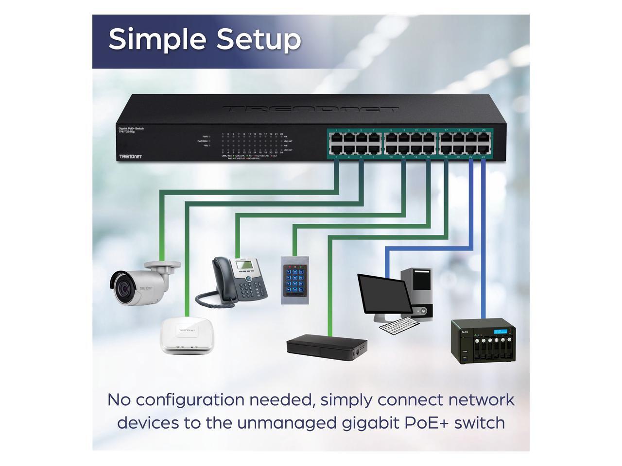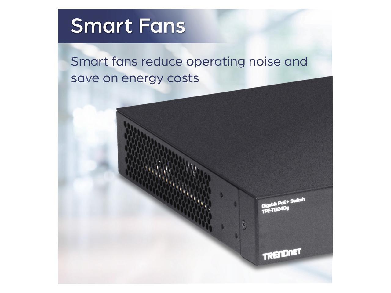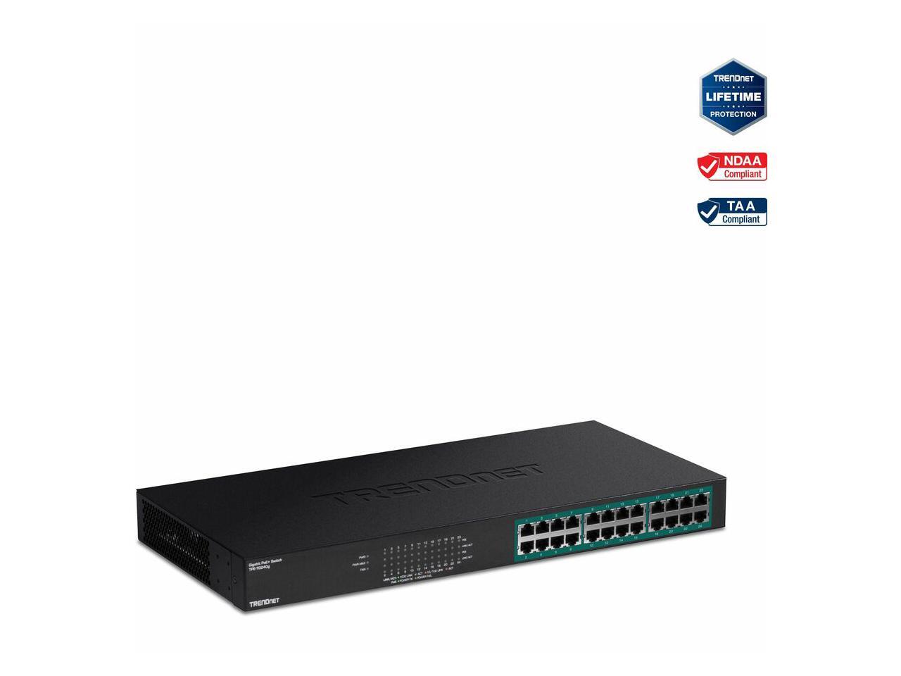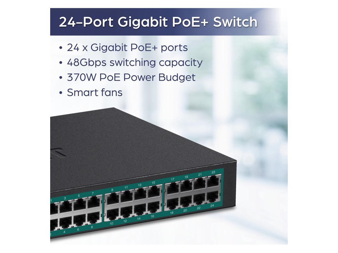 TRENDnet 24-Port Gigabit PoE+ Switch, 24 x Gigabit PoE+ Ports, 370W Power Budget, 48Gbps Switch Capacity, RackMount Kit Included, Ethernet Network Switch, Metal, Lifetime Protection, Black, TPE-TG240G
