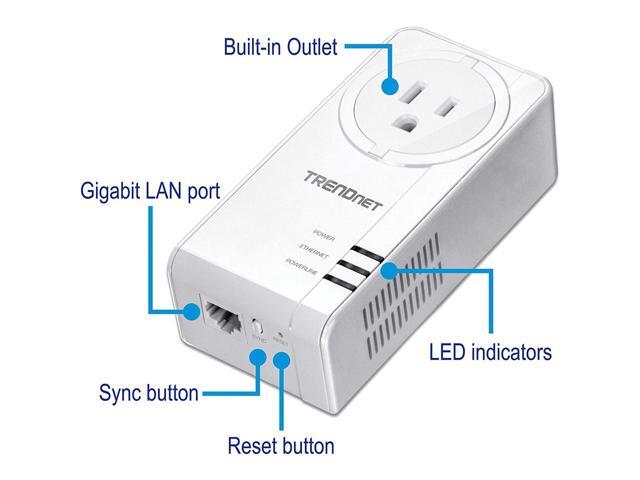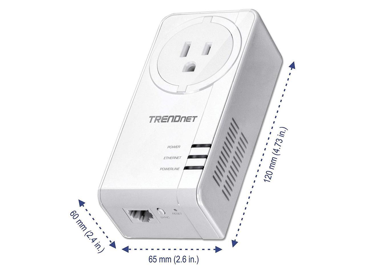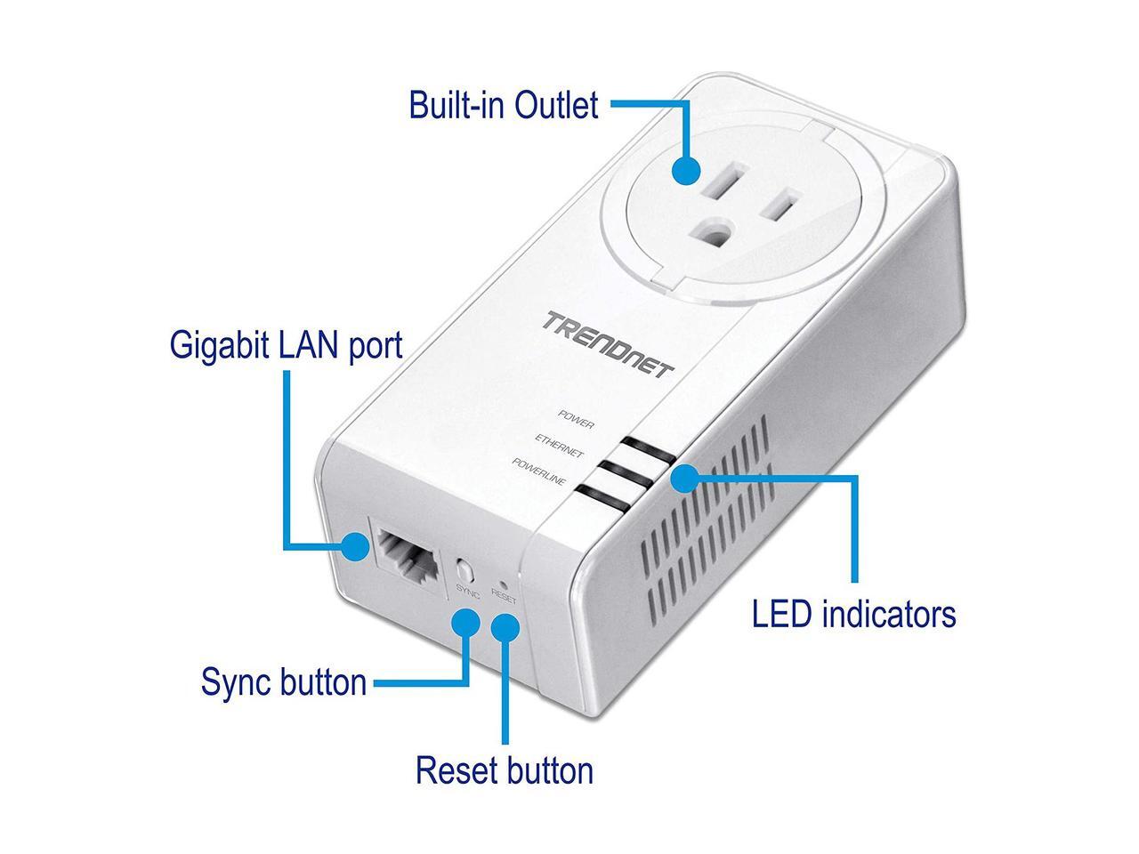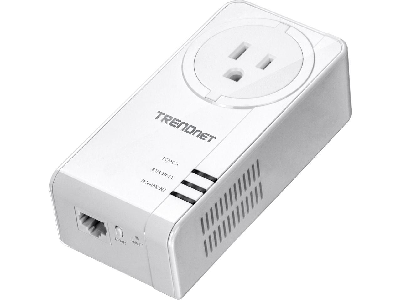 TRENDnet Powerline 1300 AV2 Adapter with Built-in Outlet, Gigabit Port; IEEE 1905.1 & IEEE 1901, Range Up to 300m (984 ft.), TPL-423E