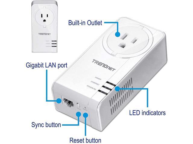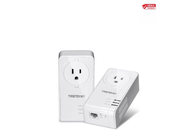 TRENDnet Powerline 1300 AV2 Adapter With Built-in Outlet Adapter Kit, Includes 2 x TPL-423E Adapters, IEEE 1905.1 & IEEE 1901, Gigabit Port, Range Up To 300m (984 ft), White, TPL-423E2K