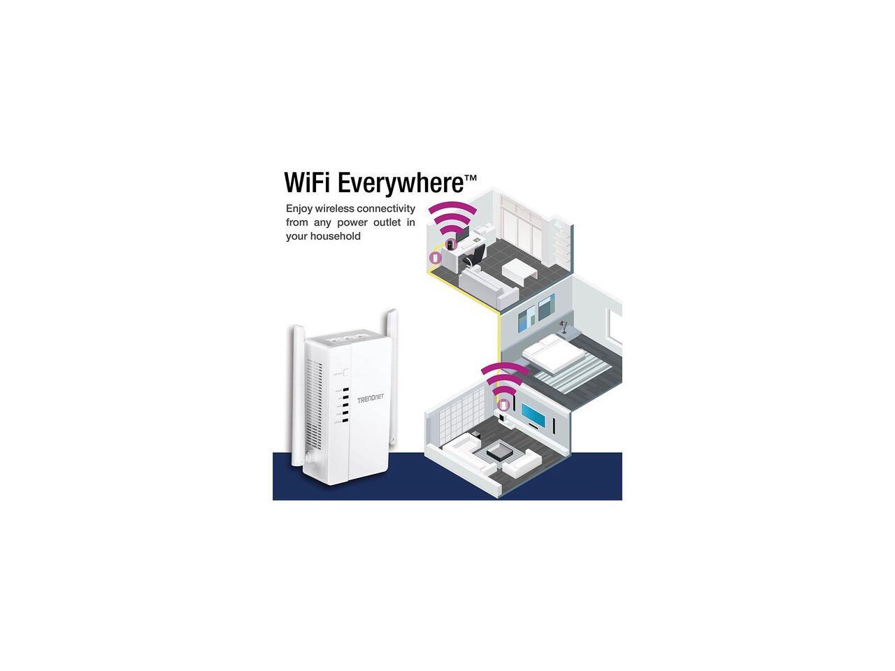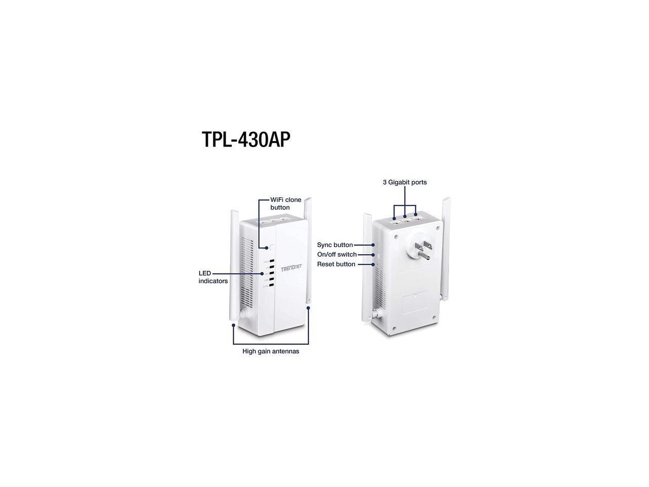 TRENDnet Wi-Fi Everywhere Powerline 1200 AV2 AC1200 Wireless Access Point, Built-in Concurrent Dual-Band, 3 x Gigabit Ports, MIMO, Beamforming, White, TPL-430AP