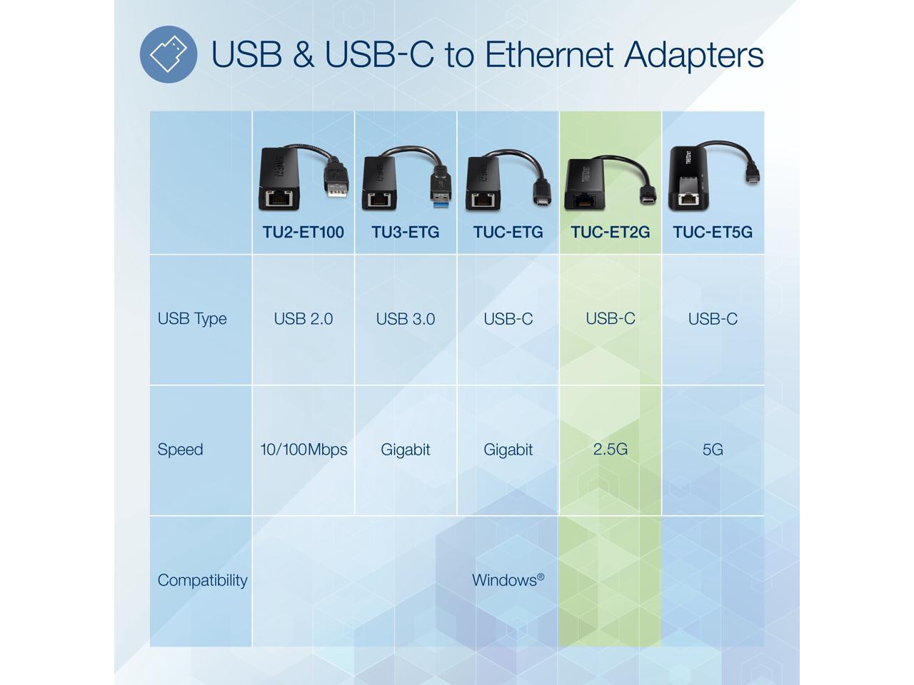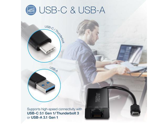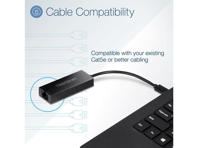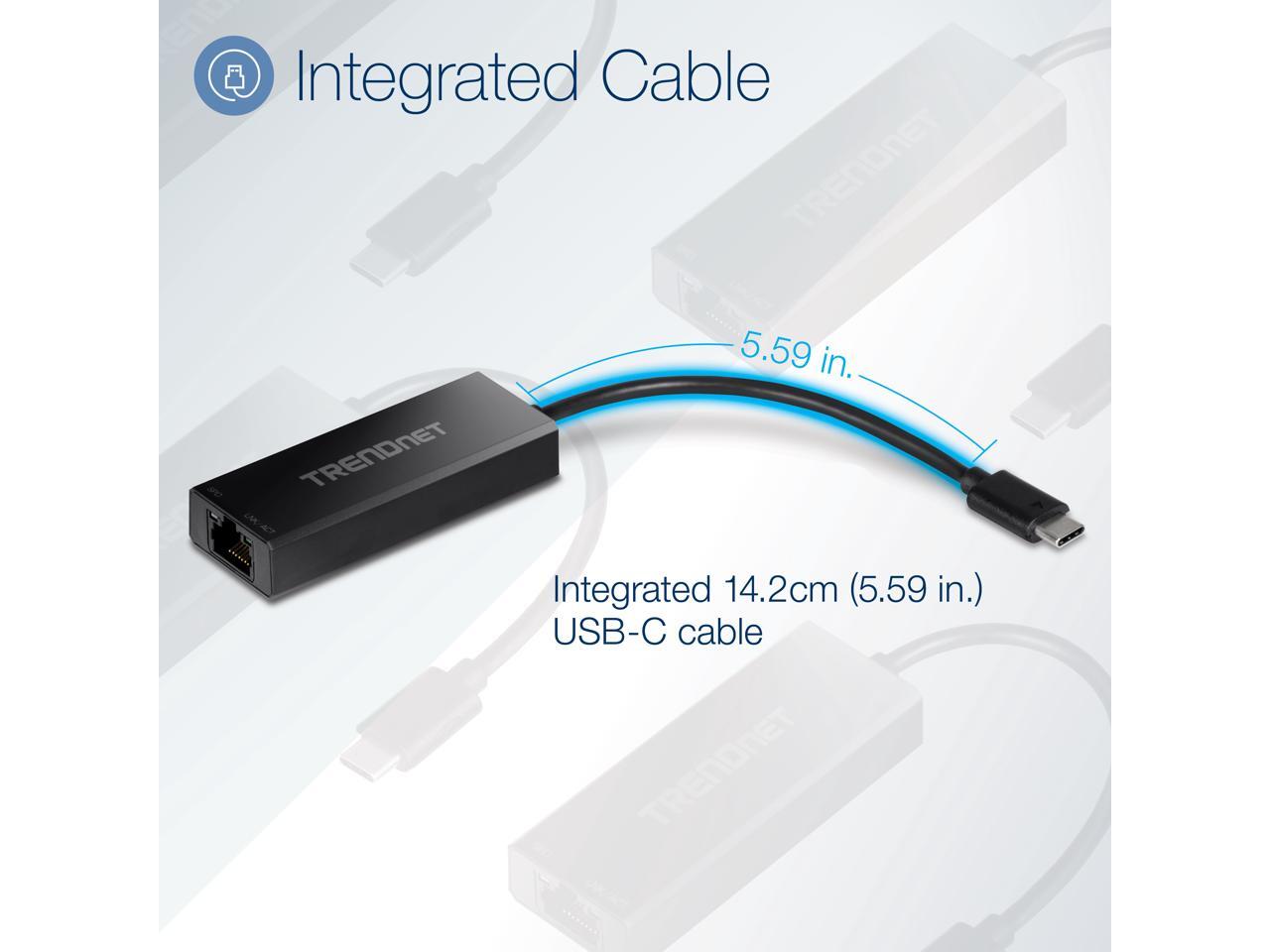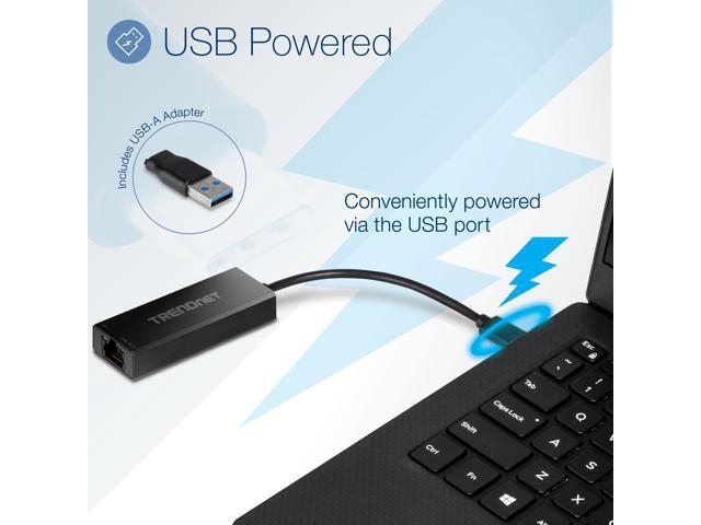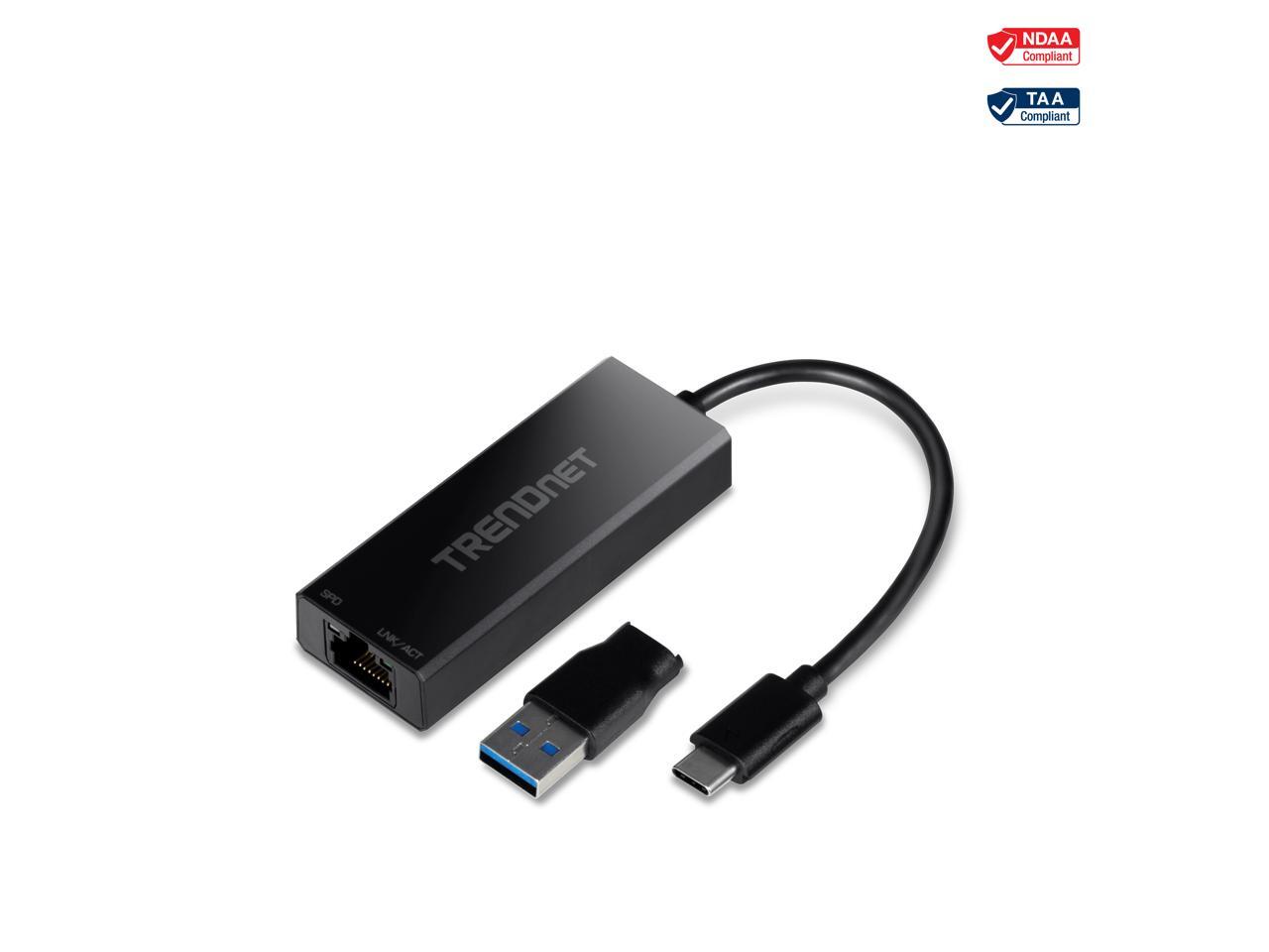 TRENDnet 2.5G USB-C to RJ-45 Ethernet Adapter, 2-in-1 Adapter Compatible with USB C/Thunderbolt 3 or USB 3.1, Windows Compatible, USB-C to USB-A Adapter Included, Black, TUC-ET2G
