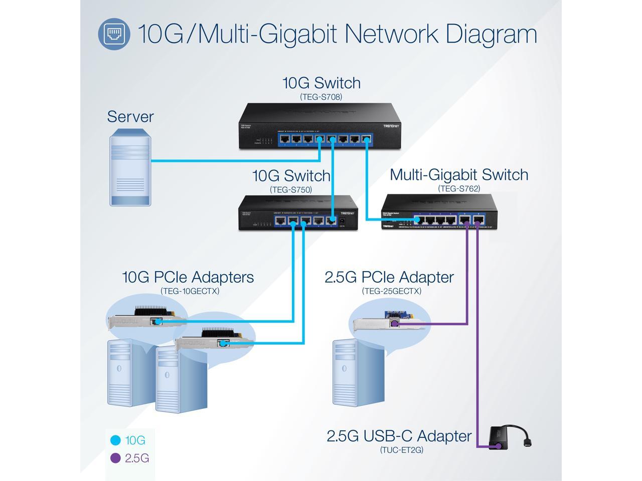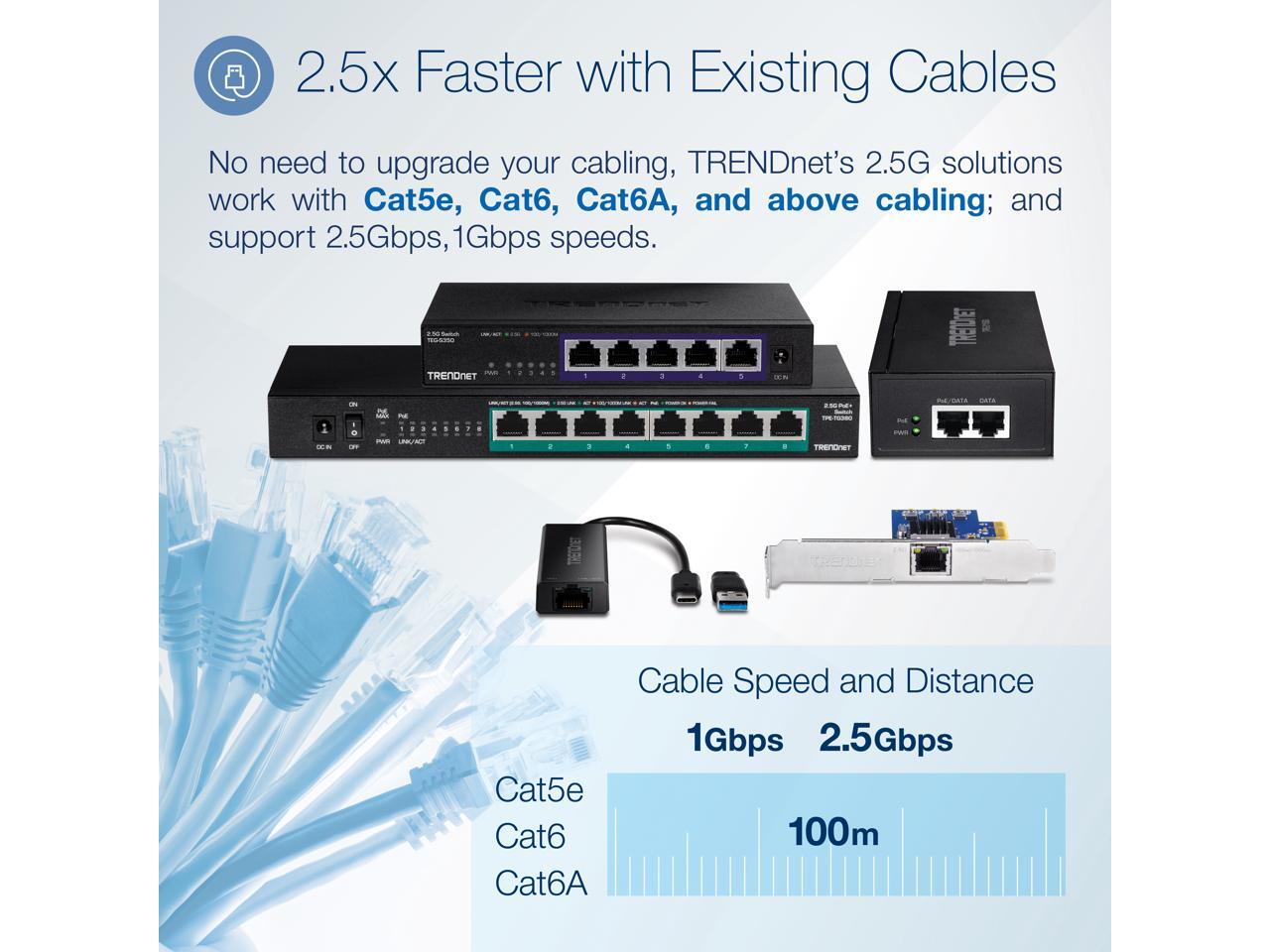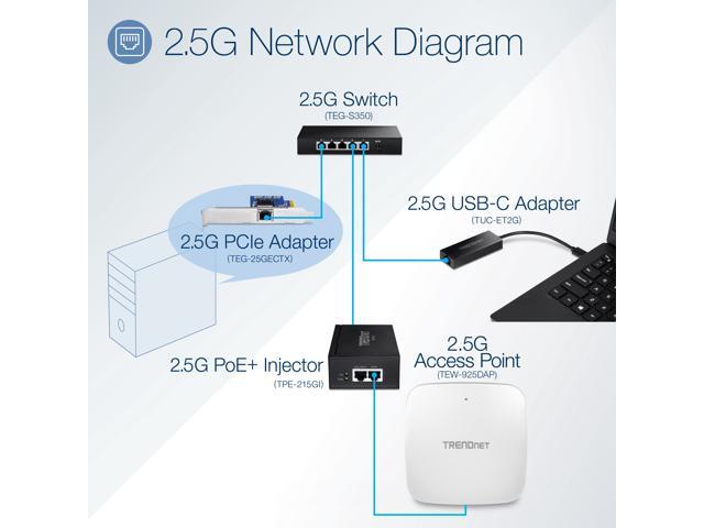 - 2.5GBASE-T supports up to 2.5Gbps connection speeds