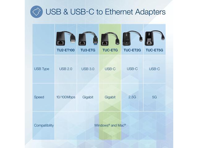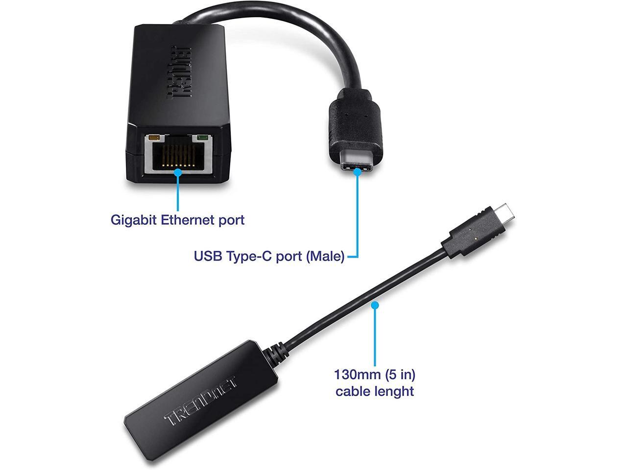 TRENDnet USB Type-C to Gigabit Ethernet LAN Wired Network Adapter for Windows & Mac, Compatible with Windows 10, and Mac OS 10.15 - 10.6, Energy Saving, 5 inch length, TUC-ETG