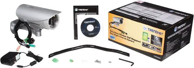 Record 1280 x 1024 pixel (SXGA) H.264 video at up to 15 frames per second (fps) or 640 x 480 pixel (VGA) resolution at up to 30fps. Manage up to 32 TRENDnet cameras with the included complimentary camera management software. Advanced features include motion detection recording, email alerts, scheduled recording sessions, H.264 / MPEG-4 image compression, 3GPP support, Samba client support, Input / Output ports to network to alarm systems, date-and-time and other text overlays, mask overlays to conceal sensitive areas, and digital zoom. A wall / ceiling mounting kit is included and a sun visor shields the camera from direct sunlight.