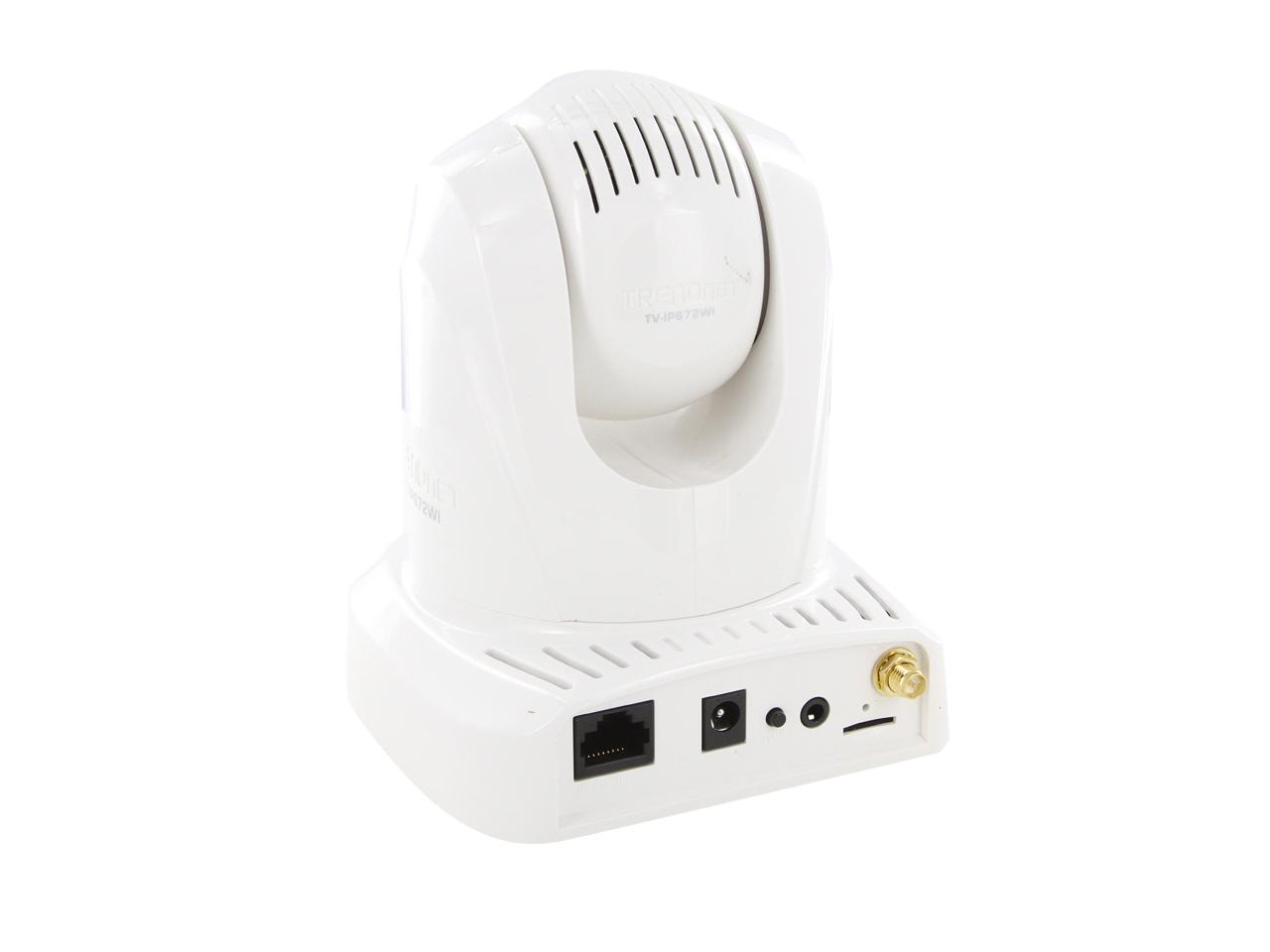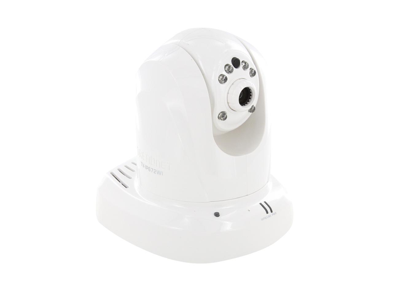 General Information Manufacturer Supplier: TRENDnet Manufacturer Part Number: TV-IP672WI Manufacturer Website Address: trendnet Brand Name: TRENDnet Product Model: TV-IP672WI Product Name: Megapixel Wireless N Day Night PTZ Internet Camera Marketing Information: The Megapixel Wireless N Day Night PTZ Internet Camera, model TV-IP672WI, provides day and night security over a large area. Pan the camera side-to-side a remarkable 340? and tilt up-and-down 115? from any Internet connection. Record indoor video in complete darkness for distances of up to 7.5 meters. Wireless n technology provides unsurpassed wireless coverage and improved streaming video quality. Add this camera to your wireless network at the touch of a button with Wi-Fi Protected Setup (WPS). Record 1280 x 800 Megapixel (WXGA) video at up to 30 frames per second (fps). Manage up to four video profiles to record HD video while streaming low resolution video to a compatible smart phone at the same time. Manage up to 32 TRENDnet cameras with the included complimentary camera management software. Advanced features include adjustable motion detection recording areas, email alerts, pan tilt, Auto-Patrol, scheduled recording sessions, H.264 MPEG-4 MJPEG image compression, date-and-time overlays, a Micro-SD card slot for backup storage, two-way audio (speakers not included), an adjustable lens, and four times digital zoom. A wall ceiling mounting kit is included and the camera's off white housing blends into most environments. Product Type: Network Camera Display & Graphics Image Sensor Type: CMOS Illumination: 0 Lux Color Supported: Color Monochrome Tilt: 115? Swivel: 340? Video Video Formats: H.264 MPEG-4 Motion JPEG Maximum Video Resolution: 1280 x 800 Audio Audio Formats: AMR Image Image Formats: JPEG Lens Lens Included: Yes Focal Length: 4 mm Lens Mount Type: Board Mount Aperture Range: f 1.5 Digital Zoom: 4x Minimum Focus Distance: 7.87" Exposure Shortest Shutter Speed: 1 15 Second Longest Shut