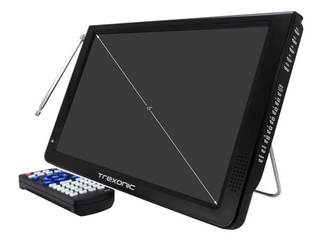 Trexonic Ultra Lightweight Rechargeable Widescreen 12" LED Portable TV with HDMI, SD, MMC, USB, VGA, Headphone Jack, AV Inputs and Output and Built-in Digital Tuner and Detachable Antenna