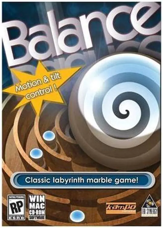| Features | Balance from Tri Synergy is a puzzle game reminiscent of the classic wooden board game: Labyrinth. The object of the game is to tilt the maze to guide balls to multiple targets through challenging 3D obstacle courses. Simply move the mouse to tilt the playfield. Players can post and share their best times over the internet along with a recording. Balance can not only be controlled by the mouse, but can also be played by simply tilting a laptop using compatible hardware. |