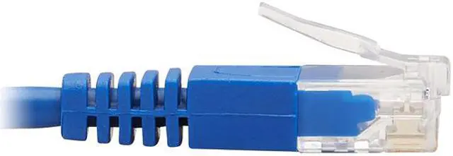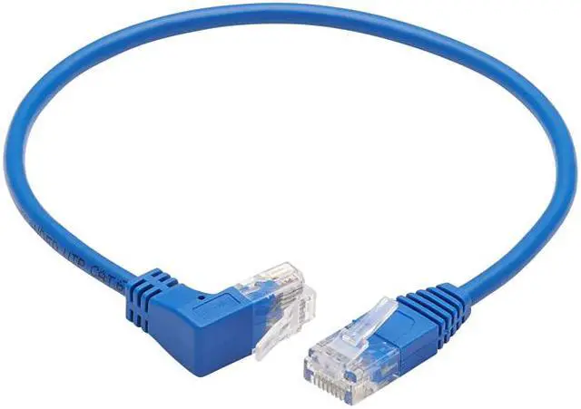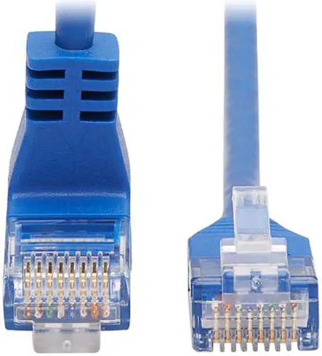 | Features | Cat6 Ethernet patch cable delivers fast transmission speeds up to 1 Gbps in your LAN Up-angle RJ45 connector is easy to plug into switch or panel pressed against a wall Over 38% slimmer than standard Cat6 cables to increase airflow in full racks Easy to route around corners and through crowded cable management panels Color-coded blue for fast, easy identification in a crowded rack or workstation |