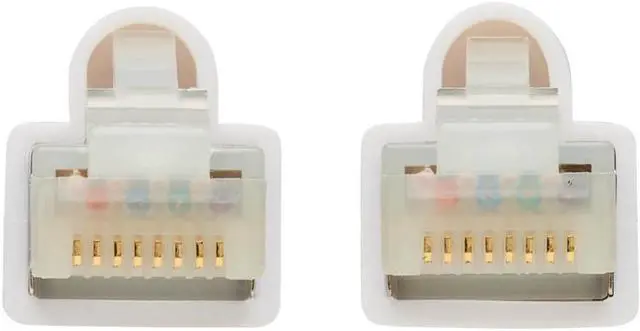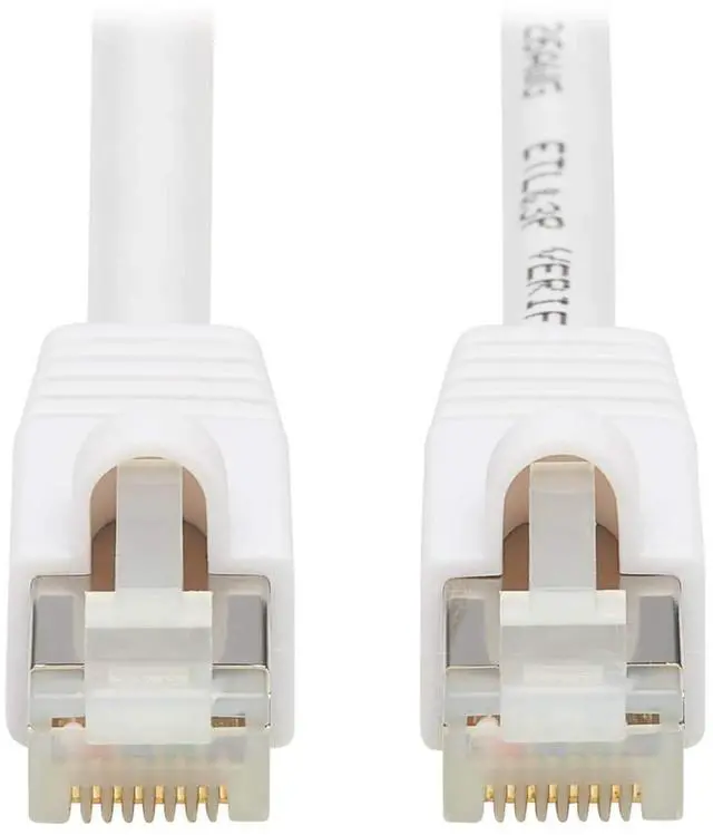 The cable has a white PVC jacket, which is easy to identify quickly in a crowded patch panel or switch and helps prevent the cable from becoming accidentally disconnected.