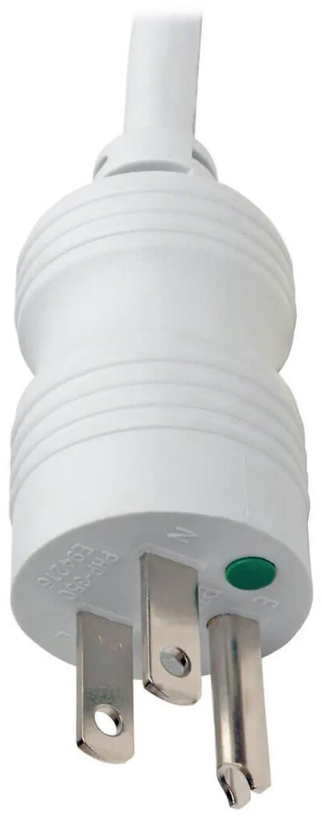 A: The power strip features a 15 ft. cord with a NEMA 5-15P-HG hospital-grade plug for ample reach to a power source.