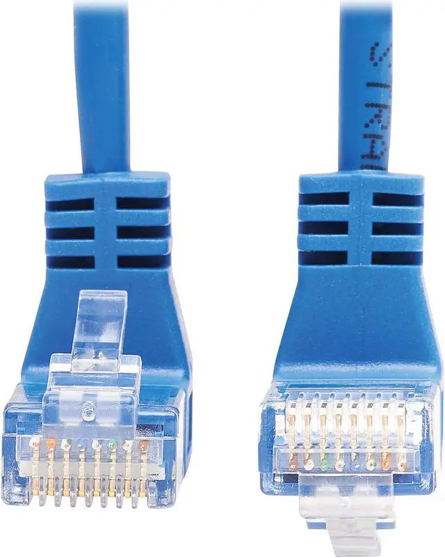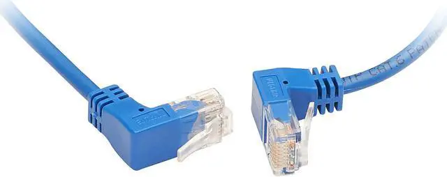| Features | Cat6 Ethernet patch cable delivers fast transmission speeds up to 1 Gbps in your LAN Up-angle and down-angle RJ45 ends are easy to plug into devices pressed against a wall Over 38% slimmer than standard Cat6 cables to increase airflow in full racks Easy to route around corners and through crowded cable management panels Cable is blue for fast, easy identification in a crowded rack or workstation |