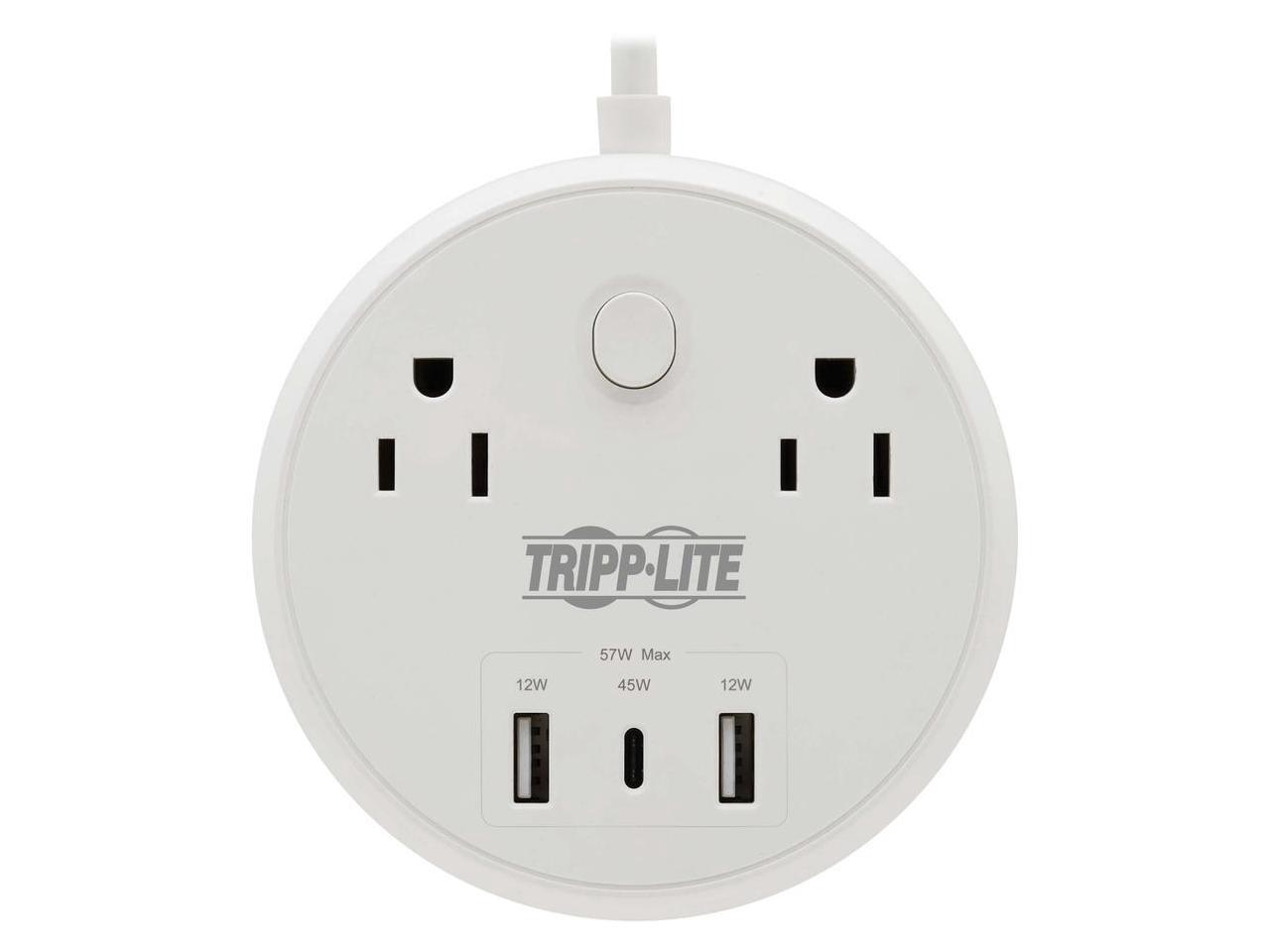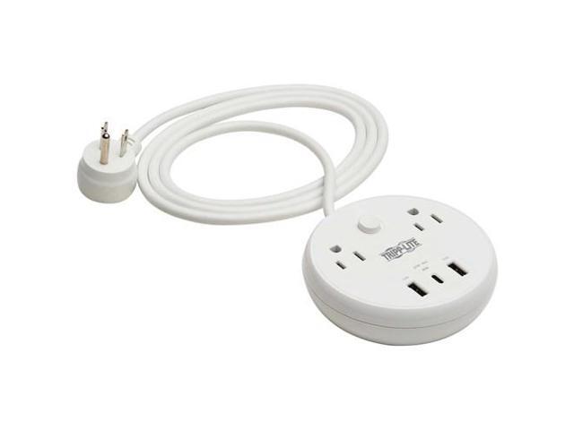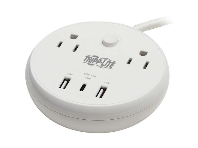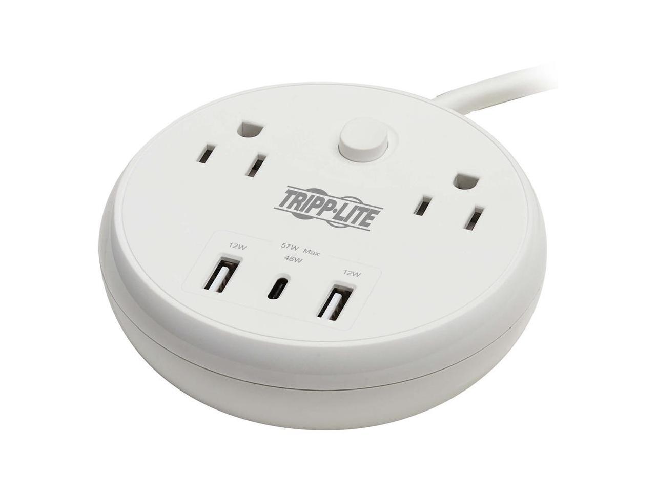 Tripp Lite Safe-IT 57W 2-Outlet Surge Protector - 5-15R Outlets, 3 USB Ports, 8 ft. (2.4 m) Cord, 300 Joules, Antimicrobial Protection, TLP28PD57WCAM