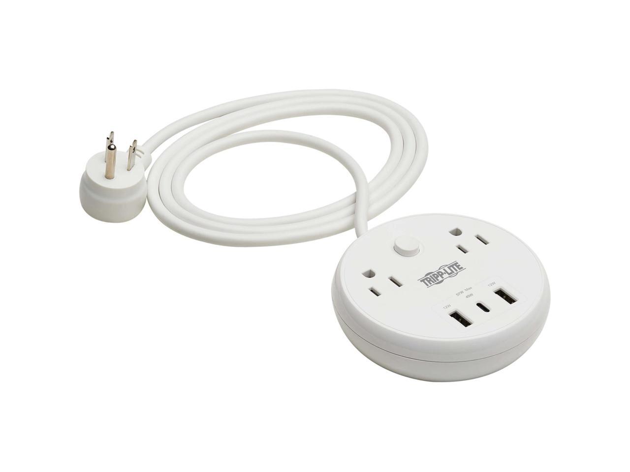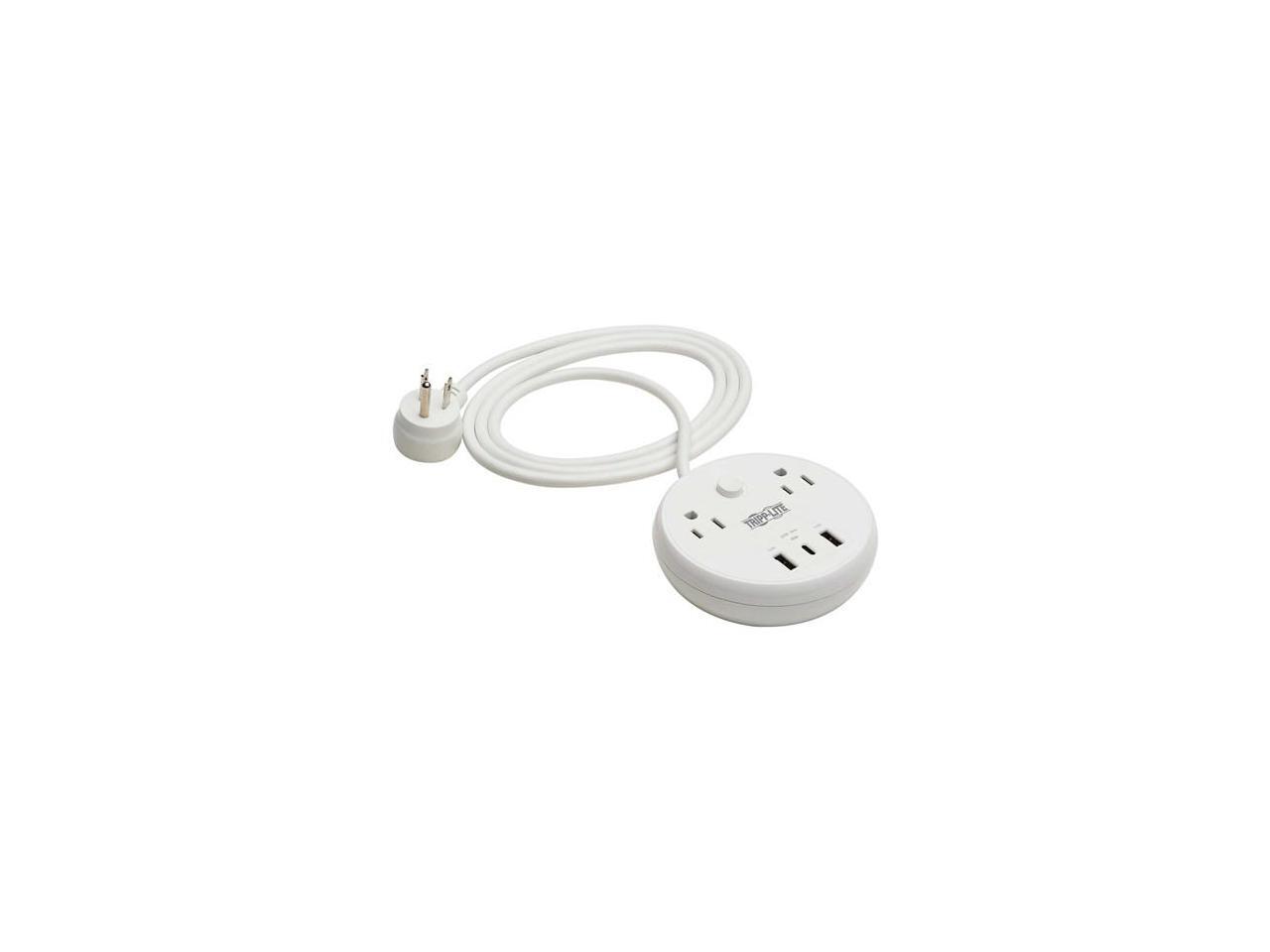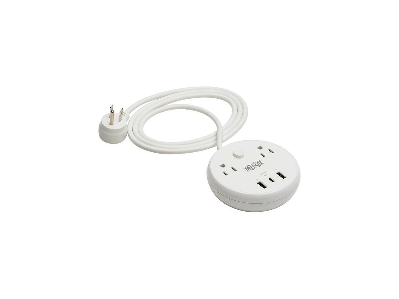 Tripp Lite Safe-IT 57W 2-Outlet Surge Protector - 5-15R Outlets, 3 USB Ports, 8 ft. (2.4 m) Cord, 300 Joules, Antimicrobial Protection, TLP28PD57WCAM