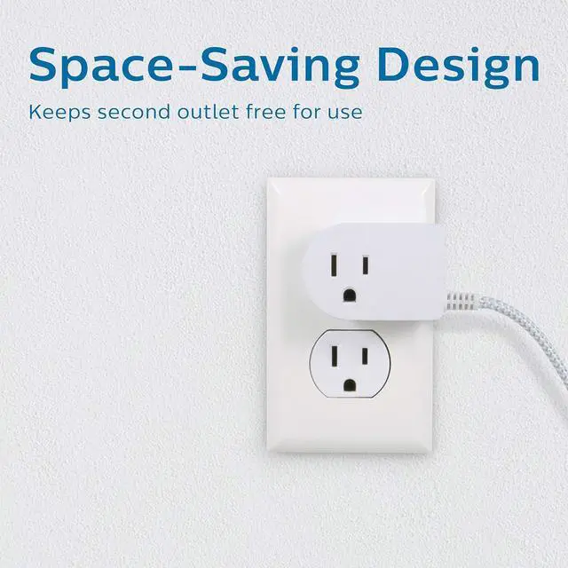 | Features | Philips Grounded Power Switch Plug with Braided Cord, 6 Ft Long Power Cable, ON/OFF switch, for Tabletop or Wall Mount, Perfect for Lamps/Seasonal Lights, 3 Prong, Slip Resistant Base, SPS1611WA/37, 1 Pack, 8 amps, 125 volts, Energy Efficiency, Safety Standards, IP00, Plug-In Mount, ON-OFF, Plug In |