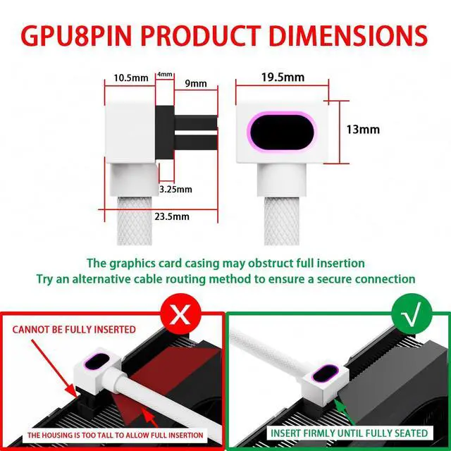 8PIN PSU GPU Extension Cable,ARGB PC Cable with 5V 3Pin,18AWG 90°Right-Angle Design for Cleaner PC Builds.30CM(White-GPU-B)