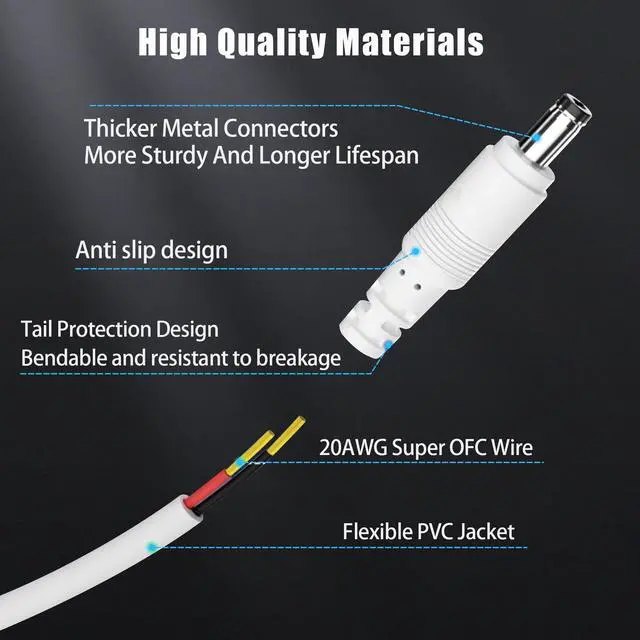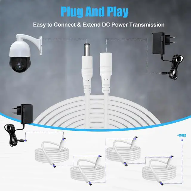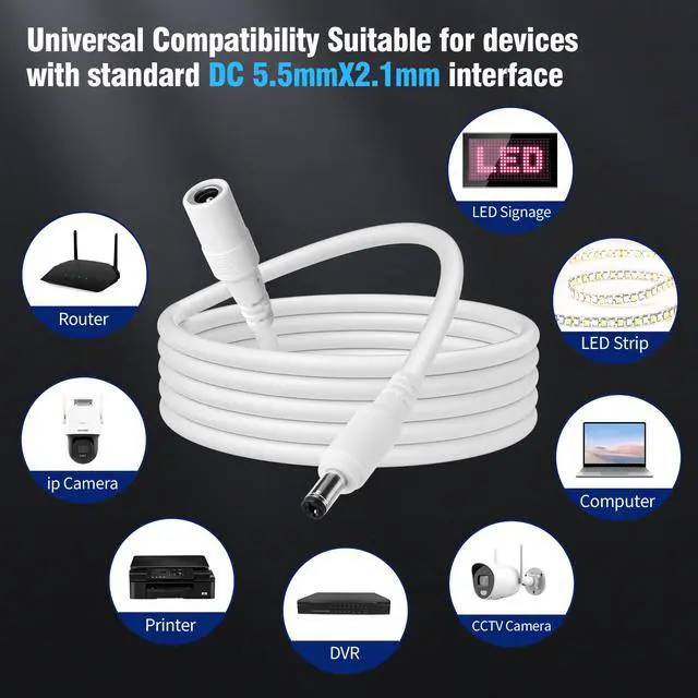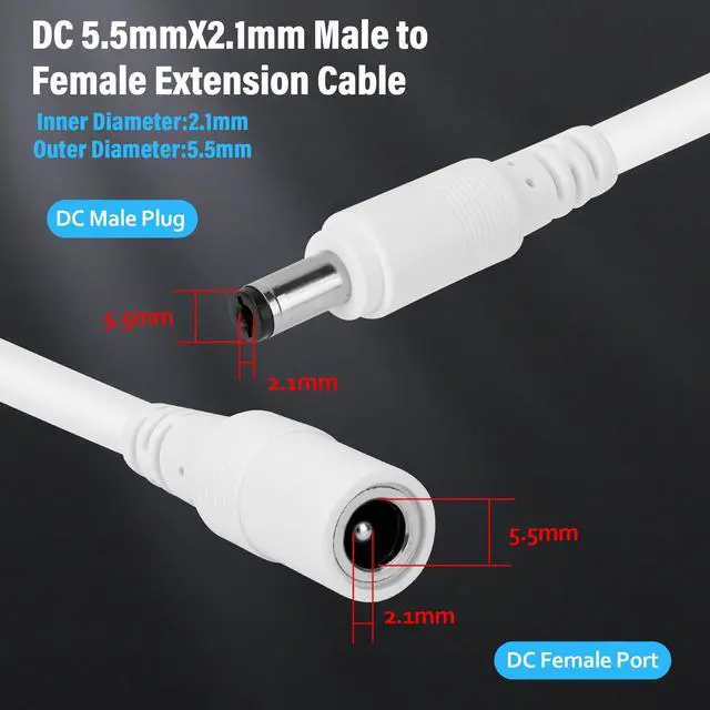 12V DC Power Extension Cable 10 Feet (2-Pack), 5.5 mm x 2.1 mm 5521 Male to Female 5V 9V 12V 24V Plug Supply Adapter Power Cord for CCTV Security Camera, IP Network, DVR Standalone, LED Strip, Router
