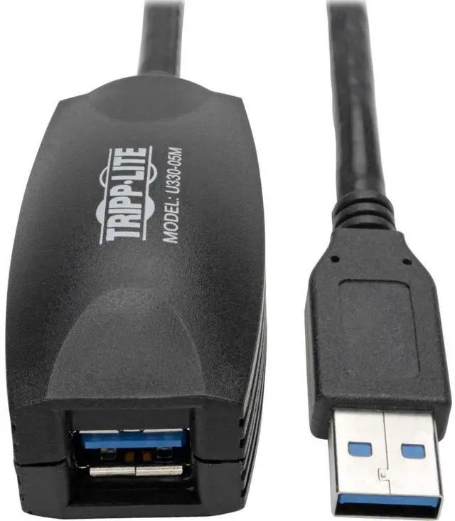 Tripp Lite's 16-Feet. USB 3.0 active extension cable is a bus powered extension cable that can be used to increase the length of a device cable without the worry of signal loss and potential performance problems. USB limits a cable's length to 16ft. Any length above 16 feet requires the use of an active cable such as this one. This cable has a signal booster built in. The cable must be plugged directly into a USB port (either on the PC or a hub). Use a standard 6-Feet 10-Feet or 15-Feet USB 3.0 A-B cable to reach the desired distance.