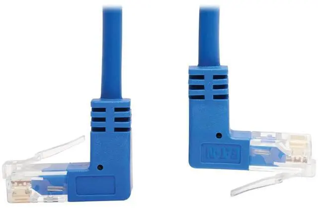 | Features | Cat6 Ethernet patch cable delivers fast transmission speeds up to 1 Gbps in your LAN Up-angle and down-angle RJ45 ends are easy to plug into devices pressed against a wall Over 38% slimmer than standard Cat6 cables to increase airflow in full racks Easy to route around corners and through crowded cable management panels Cable is blue for fast, easy identification in a crowded rack or workstation |