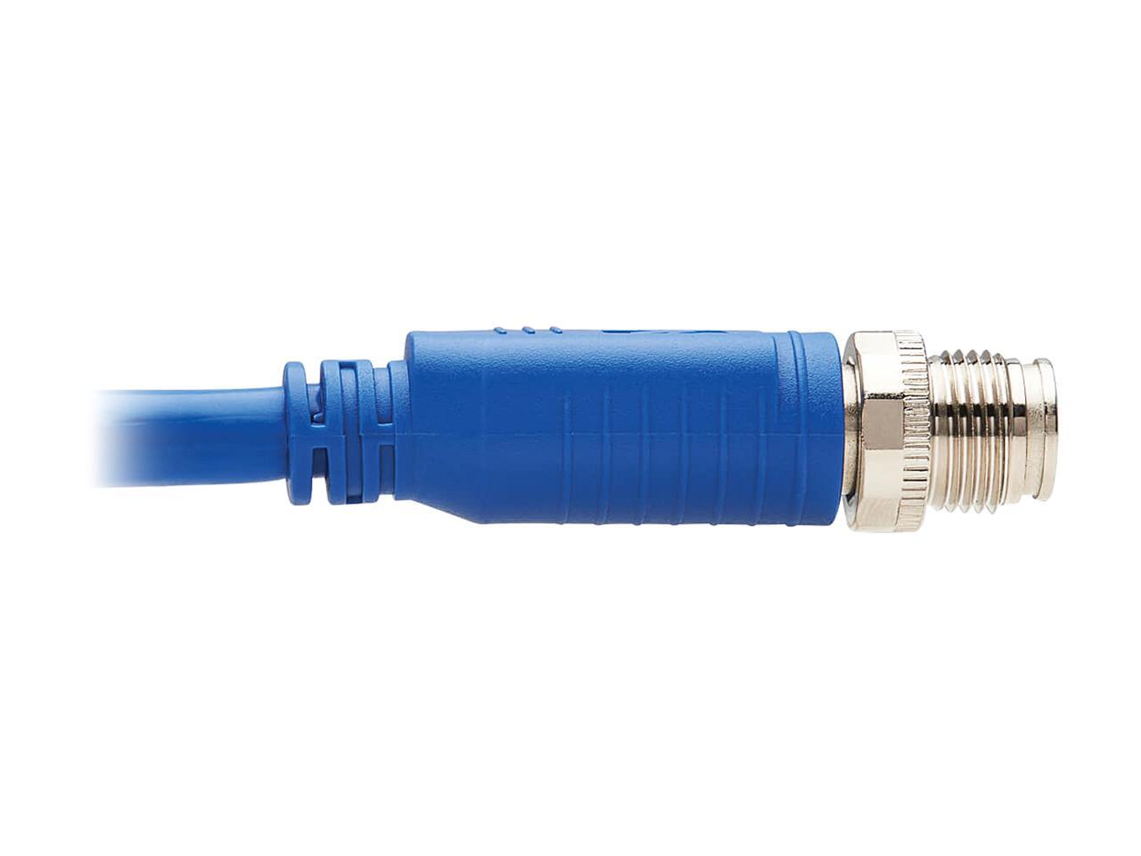 Tripp Lite M12 X-Code Cat6a Shielded Ethernet Cable, 10G F/UTP CMR-LP (M/M), IP68, 60W Power over Ethernet, Blue, 9.8 Feet / 3 Meters (NM12-6A1-03M-BL)