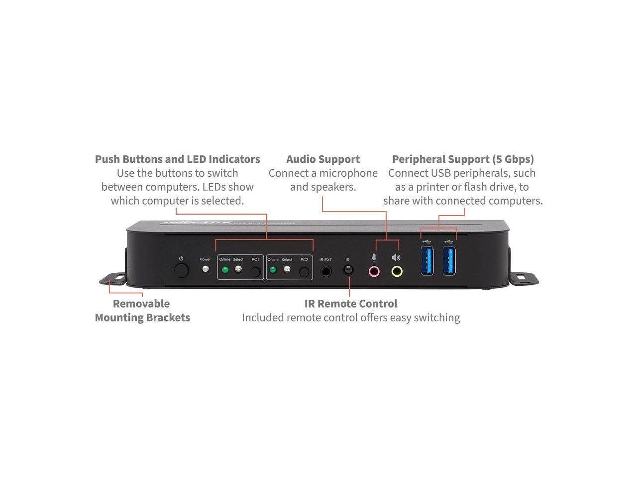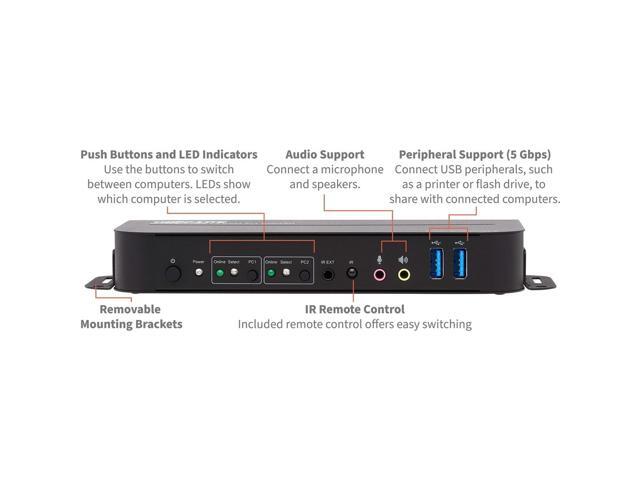 - Push buttons, hotkeys and included IR remote allow easy toggling between computers
