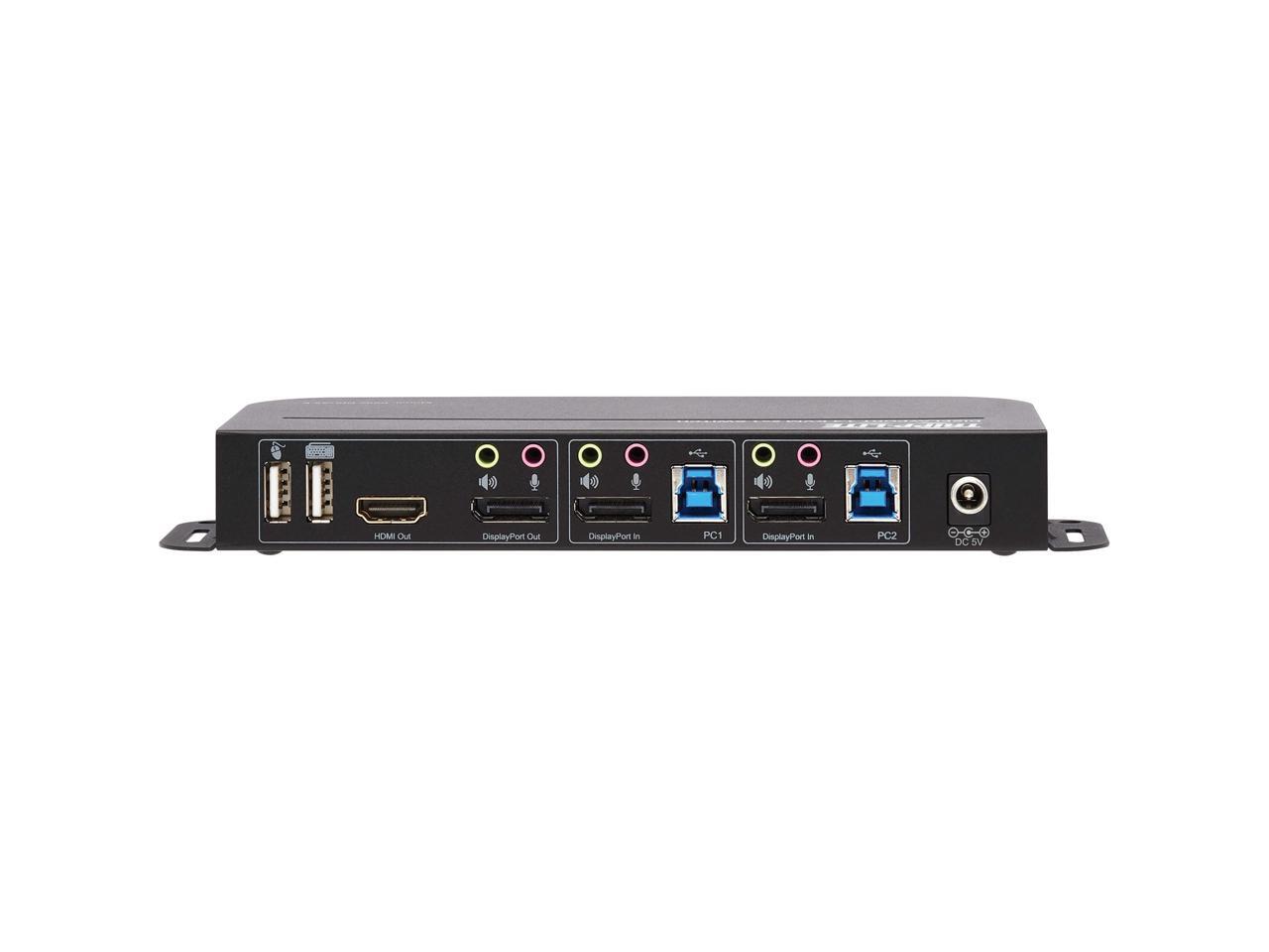 - Controls 2 DisplayPort-enabled desktop or notebook computers using one centralized DisplayPort or HDMI monitor and USB keyboard/mouse.
