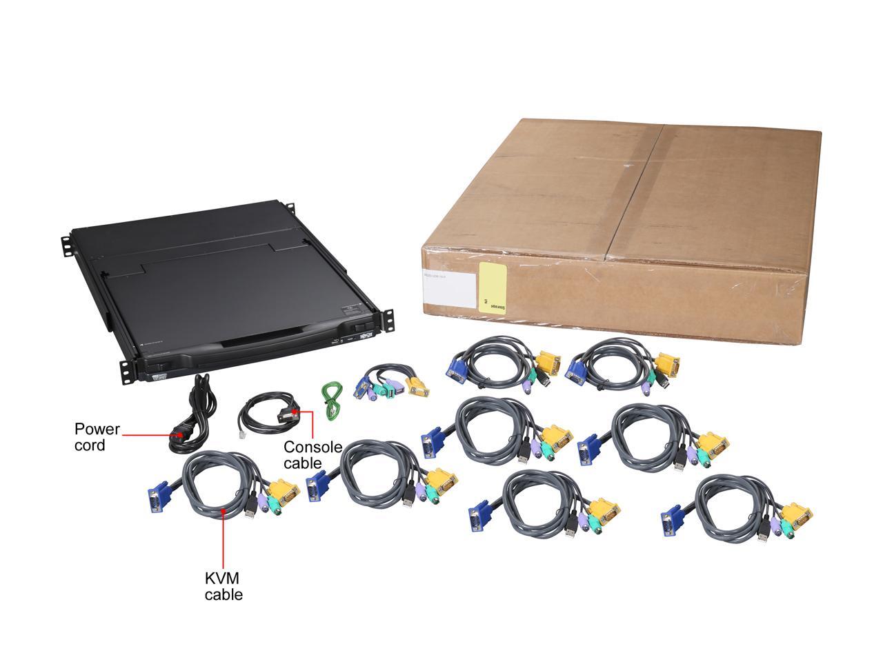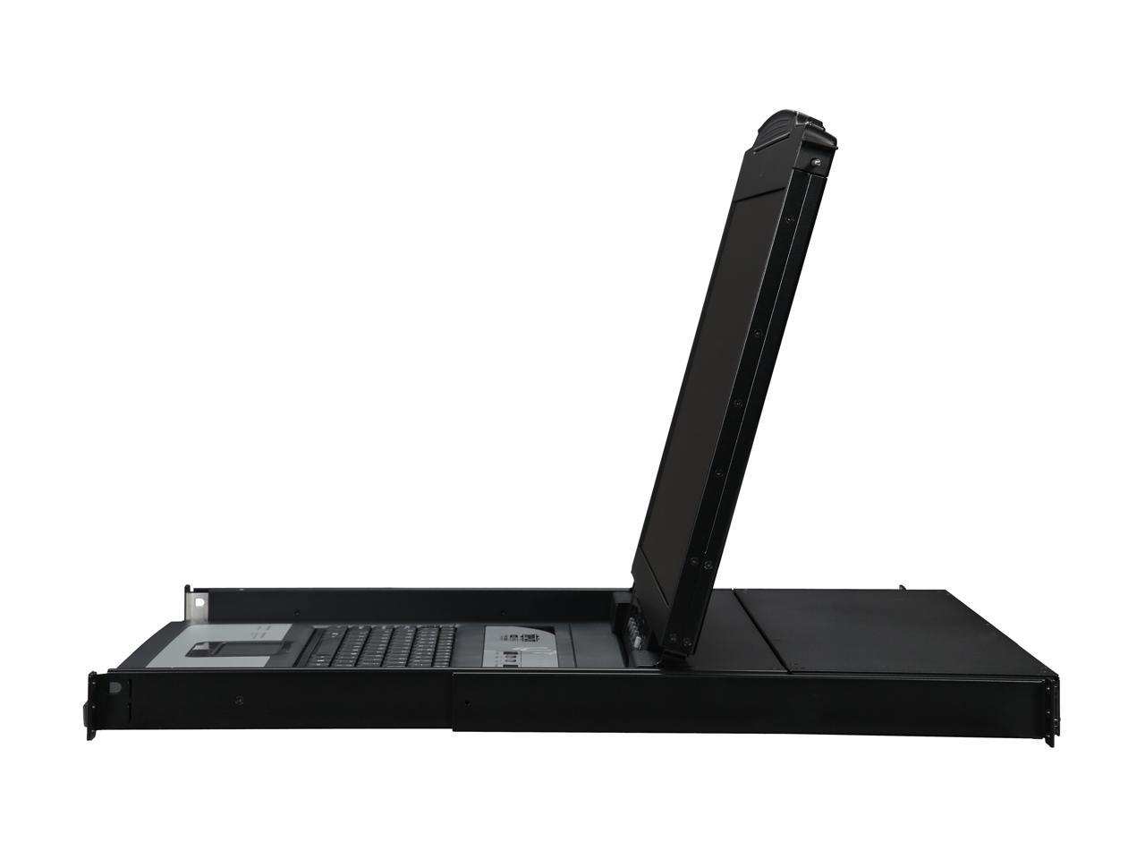 - Combines an 8-port KVM switch, 19” LCD screen, full keyboard and touchpad in a 1U rack-mountable drawer