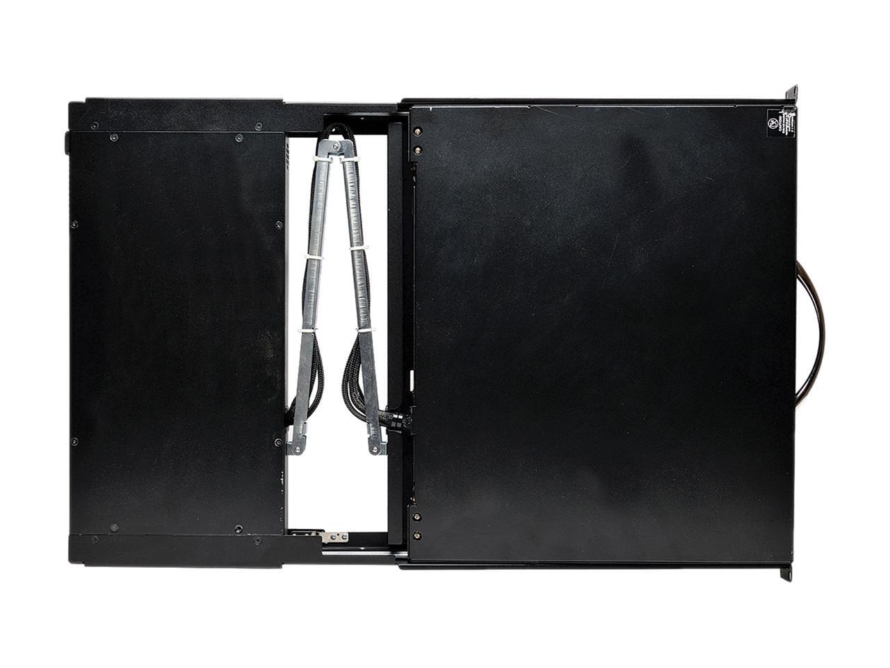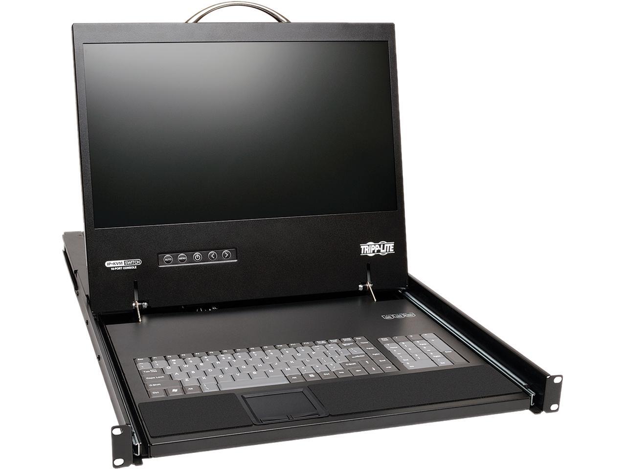 - Combines 8-port KVM switch, 19" LCD screen, keyboard and touchpad in a single 1U rack-mountable drawer