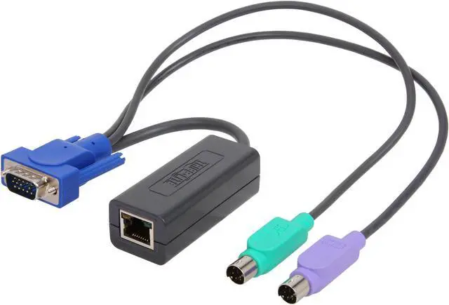Tripp Lite's NetCommander PS/2 Server Interface Module connects to the HD15 port and PS/2 ports on a computer/server, and converts them to a single RJ45 connector. Ordinary Cat5e patch cables can then be used to connect the computer/server to the switch ports on a Tripp Lite B070 / B072-Series NetCommander Cat5 KVM switch. Use of Cat5e cables frees up space in the installation that would be filled by traditional, thicker KVM cables. Eliminates the need for thicker, heavier KVM cables Compact, lightweight design Plug and Play; no software required No power supply required Allows a Server/CPU to be located up to 100ft away from the KVM switch System Requirements Server or CPU with a HD15 port and (2) PS/2 type connections A B070 / B072-Series NetCommander Cat5 KVM Switch Cat5e/6 cable; up to 100ft Package Includes 1 PS/2 Server Interface Module