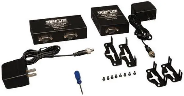 Ensure clear video transmission at distances of up to 1,000 feet! The Tripp Lite B130-101 VGA Over Cat5 Extender Kit is the ideal solution for digital signage applications that require long distance transmission and uncompromising video quality. The remote unit features built-in equalization and gain controls for adjusting the video image. Mounting hardware is included to support multiple installation options. Plus, both the source and remote units include an AC power supply.