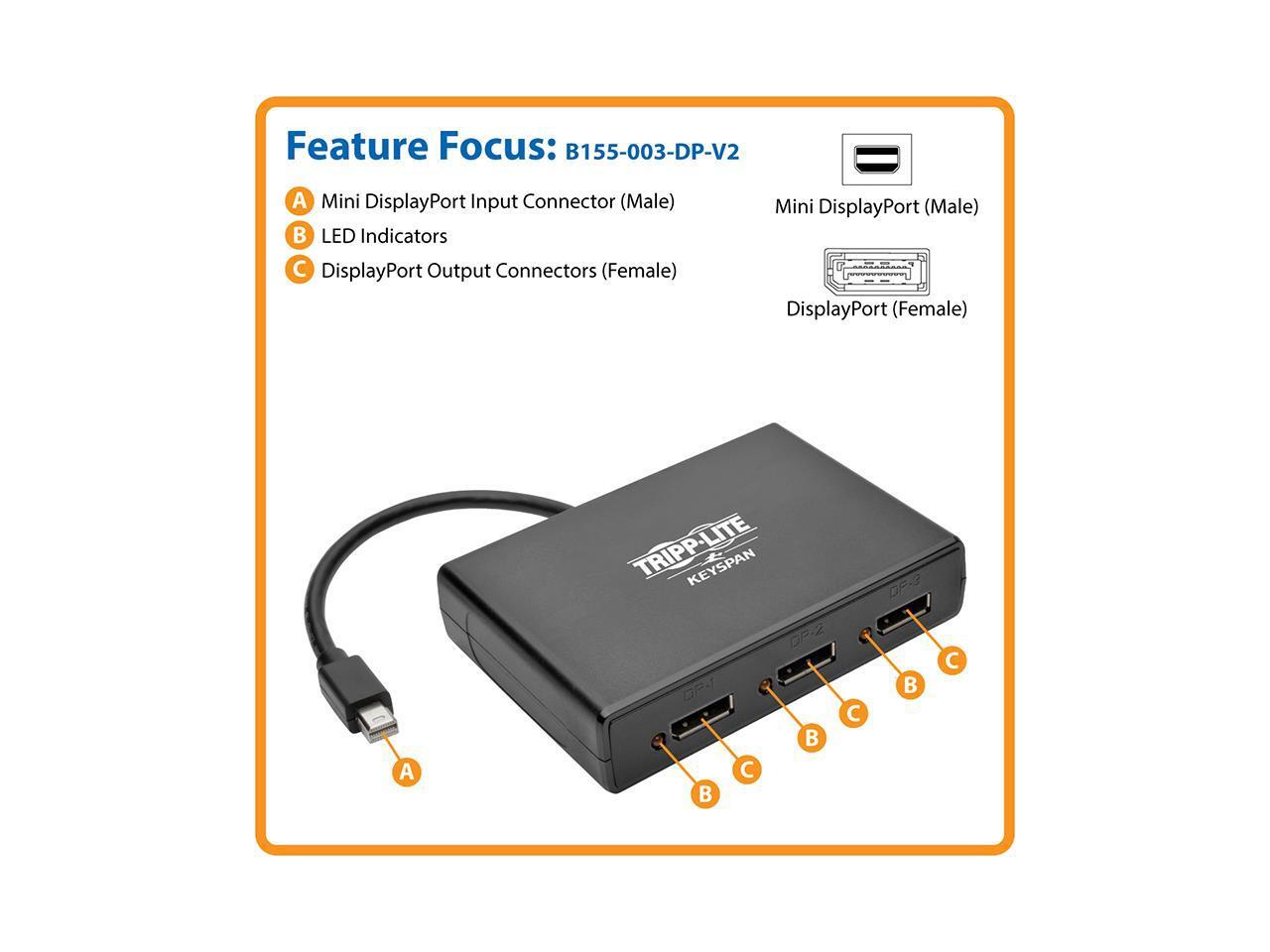Tripp Lite 3 Port Mini Displayport 1.2 To Displayport Multi-Stream (Mst) Hub 4K X 2K
