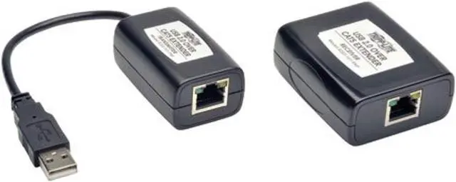 Tripp Lites B203-101-PNP, USB 2.0 over Cat5 Extender Kit, allows you to connect your USB-equipped Windows PC to a USB 2.0 or 1.1 peripheral or device up to 164 ft ( 50 meters ) away. This is especially useful for connecting a printer or other peripheral that is far away from your computer, but does not have network connectivity or is located in an area where the network is unavailable. The USB extender kit sends the USB signal from the transmitter to the receiver over a user-supplied Cat5/5e/6 cable. Transfer rates of up to 480Mbps at the maximum length. Compatible with Windows and Mac computerse. Plug and Play...no Drivers or Software required. Backwards compatible with USB 1.1 peripherals. For maximum signal integrity, use Cat5e Solid Conductor UTP cable. The USB extender kits connectors and internal components are manufactured using high-quality materials suitable for use in demanding office, industrial, and commercial settings. Compliant with the Federal Trade Agreements Act (TAA) for GSA Schedule purchases. 1-year limited warranty. Key Features Connect a Hi-Speed USB 2.0 device up to 164 ft. ( 50m ) from your computer Uses readily available Cat5/Cat6 cable Includes a 1 ft. USB A/B device cable for connecting the local transmitter unit to a computer Supports Hi-Speed data transfer rates up to 480Mbps Plug and Play...no Drivers or Software required Compatible with Windows and Mac Backwards compatible with USB 1.1 Before using with a touchscreen monitor, first confirm with the monitor manufacturer that USB 2.0 over Cat5 extenders are supported RoHS-compliant Compliant with the Federal Trade Agreements Act (TAA) for GSA Schedule purchases 1-year limited warranty Typical Applications Use with USB 2.0 peripherals that need to exceed the 16 ft. (5 m) distance limitation