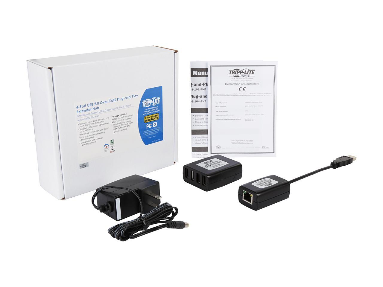 Tripp Lite 4-Port USB 2.0 over Cat5/Cat6 Extender Hub Kit, Transmitter & Receiver, Hi-Speed USB-A Up to 164 ft. (B203-104-PNP)