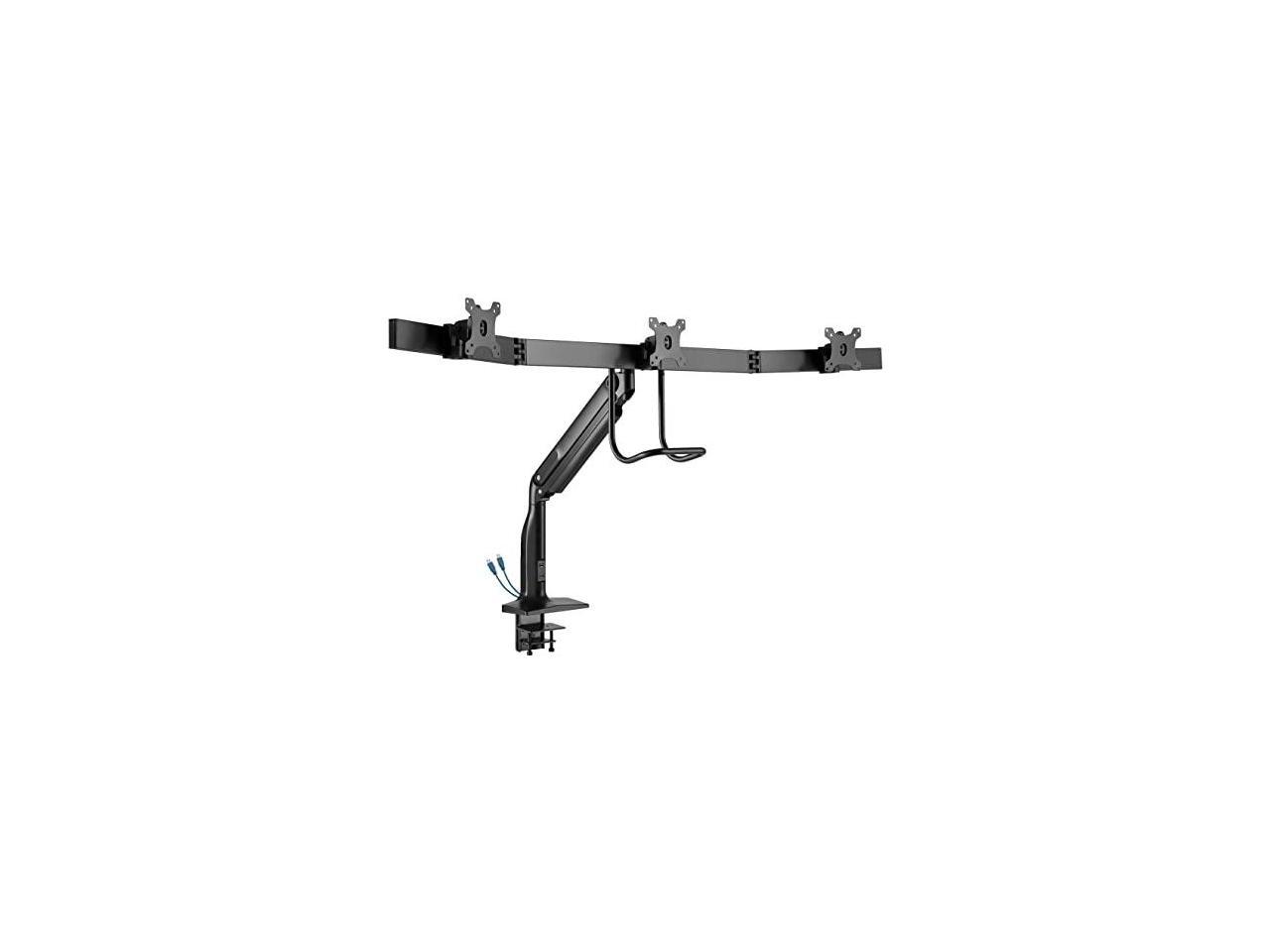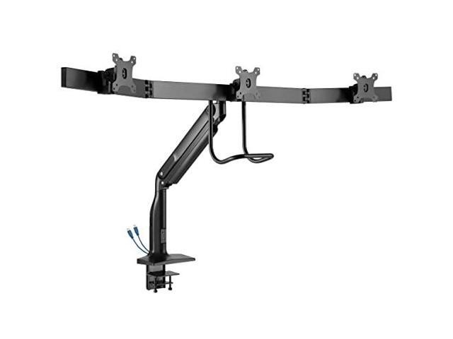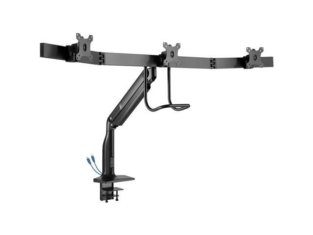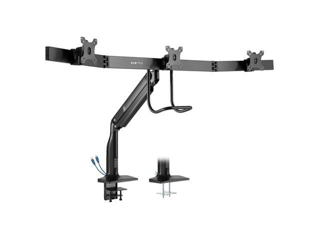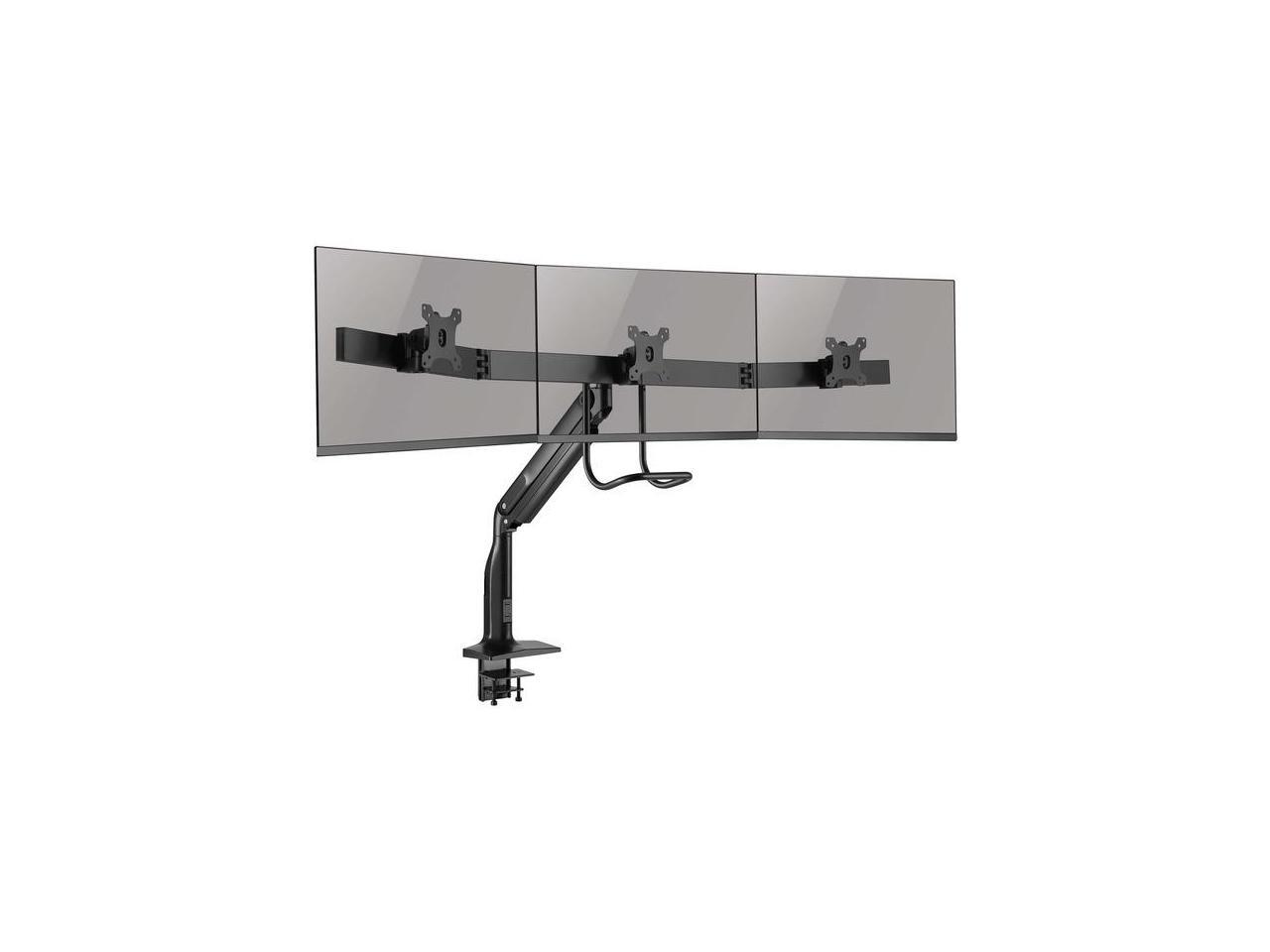 - Aluminum desk clamp or grommet mounts three 17 to 32 in. monitors at a comfortable height to free up valuable space on your desk or work area.