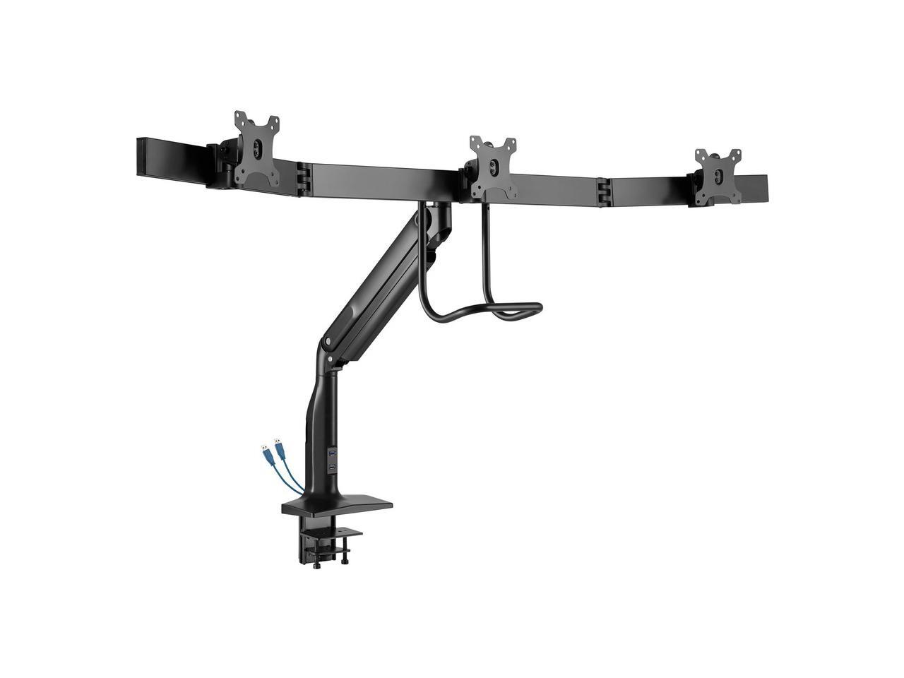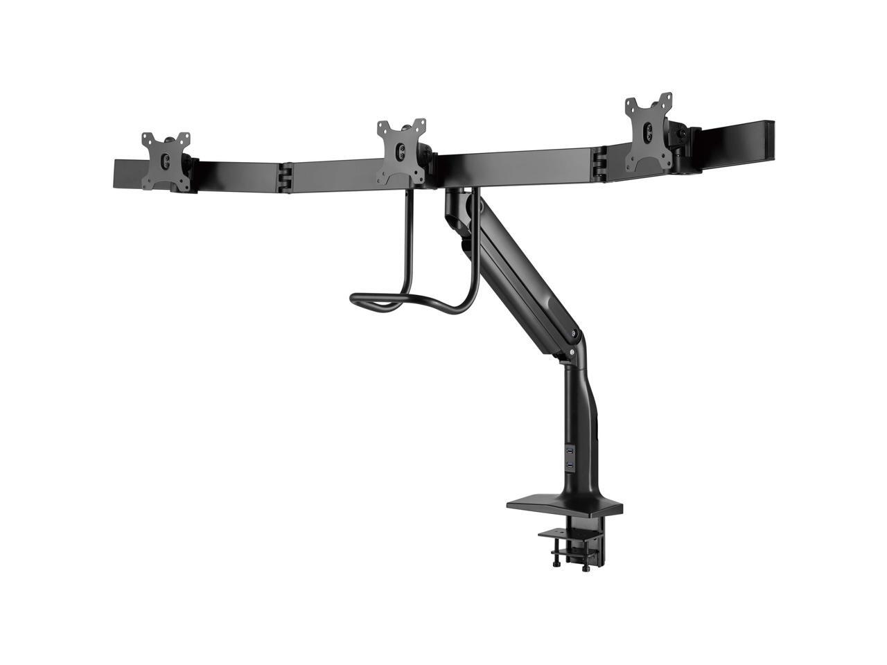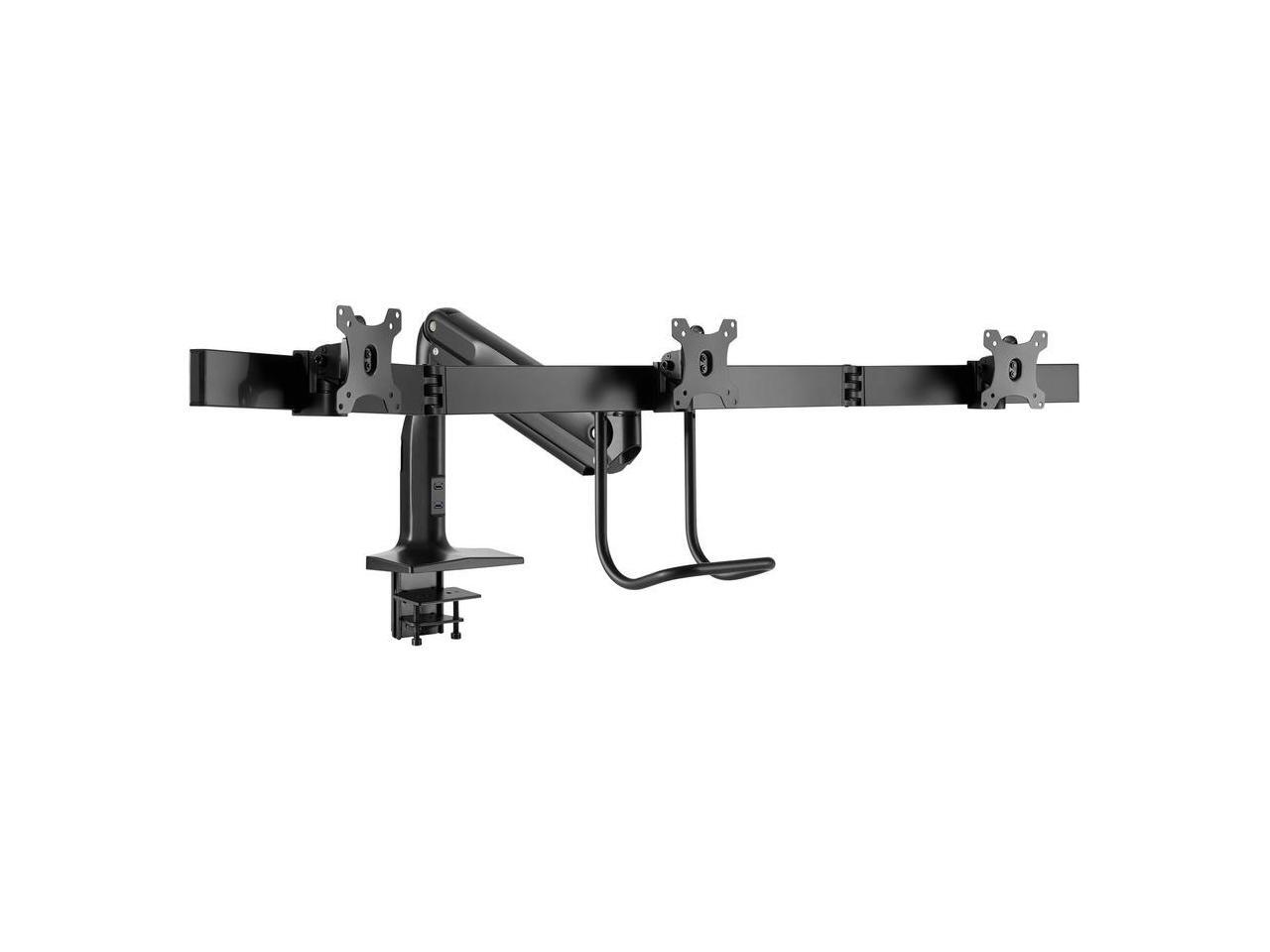 - Aluminum desk clamp or grommet mounts three 17 to 32 in. monitors at a comfortable height to free up valuable space on your desk or work area.