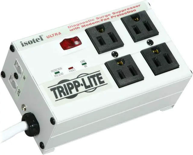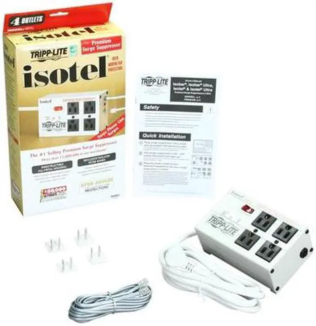 | Features | Tripp Lite's ISOBAR/ISOTEL is the world's #1 selling premium suppressor series with more than 14 million satisfied customers and a safety-tested history of 20+ years Robust surge suppression with sine-wave tracking protects against the heaviest of surge conditions, exceeding IEEE category A&B specifications and reducing 6,000V test surges to harmless levels less than 35 volts Multi-component suppression circuits combine torroidal chokes, ferrite rod-core inductors, HF/VHF capacitors and multiple layers of metal oxide varistors into exclusive isolated filter banks that remove EMI/RFI interference, even noise from other pieces of connected equipment Single phone line surge suppression protects modems, fax machines and cordless phones (2 wire, single line, RJ11 jacks) 4 outlets arranged in two filter banks prevent system crashes, reboots and performance problems common as noisy peripherals are powered off and on Network grade surge suppression rated at 2700 joules/92,000 amps Widely spaced outlets accommodate up to 4 large transformer plugs without blocking outlets Lighted power switch confirms power on/off status 6 foot AC line cord with space-saving angled input plug Keyhole mounting tabs allow permanent installation 120V AC, 50/60Hz electrical compatibility |