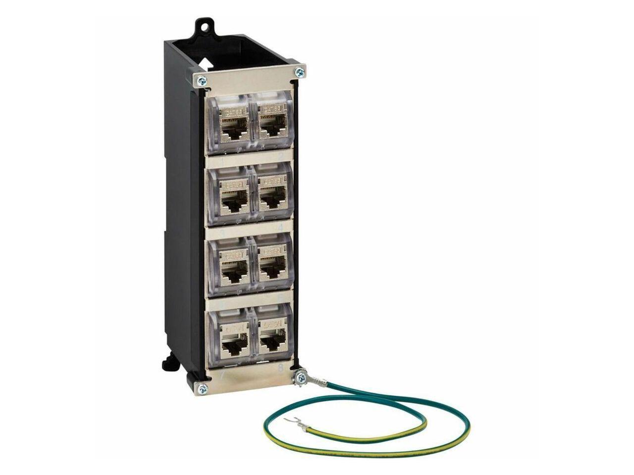 Eaton Tripp Lite N063-008-6A-SH 8-Port Metal Shielded DIN-Rail Mount Preloaded Keystone Patch Panel with Grounding - Black/Silver - TAA