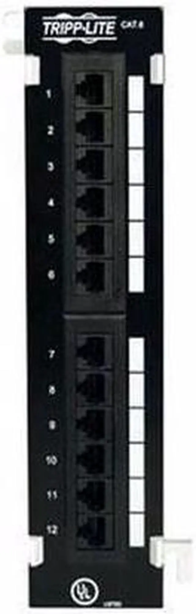 Tripp Lite's Cat6 wall-mount patch panel guarantees compatibility with all networks. Color coded for both EIA/TIA 568a & 568b installations. Panel comes with 110-type termination blocks. This 12" panel effortlessly mounts to a wall or desk with two "C" brackets. Mounting bracket is provided. Tripp Lite warrants this product to be free from defects in materials and workmanship for life. CAT6 Rated/Certified UL Approved 110 Punch Down Termination Ports clearly numbered both on front and back Labels on front enable each port to be named. Color coded label on back offers both EIA/TIA 568A & 568B wiring Metal frame Includes mounting bracket Tripp Lite warrants this product to be free from defects in materials and workmanship for life.