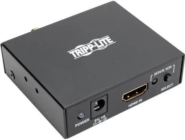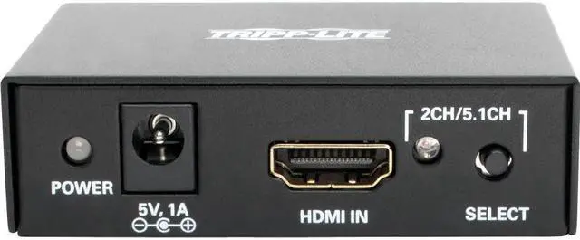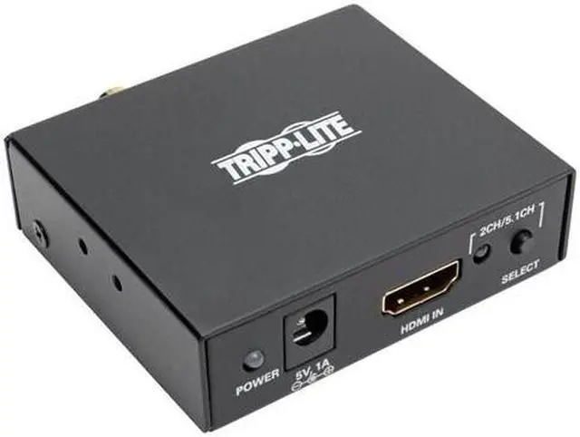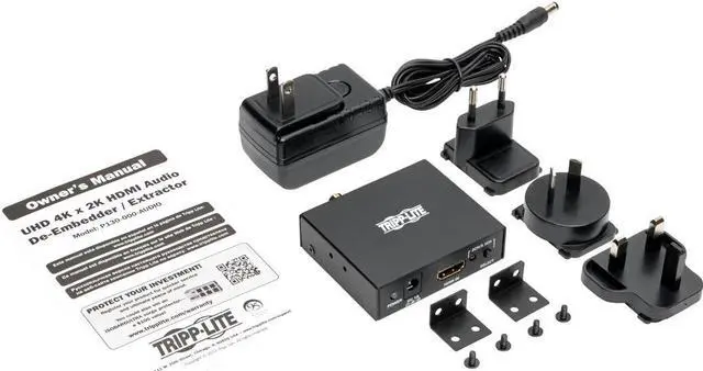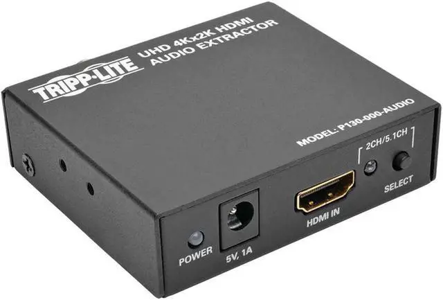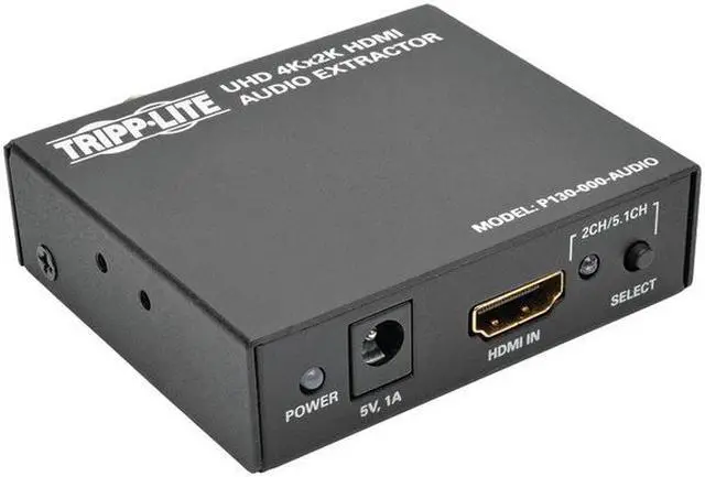 Tripp Lite P130-000-AUDIO HDMI 4K Ultra HD Audio De-Embedder/ExtractorExtracts audio from an HDMI(R) signal & sends it to a separate audio system Supports multichannel audio up to 5.1 Surround Sound 3.5mm stereo, TOSLINK(R) & RCA digital audio outputs Transmits Ultra HD video resolutions up to 3840 x 2160 (4K x 2K) Supports uncompressed audio such as LPCM Supports compressed audio including DTS(R) & Dolby(R) Digital Includes external power supply with NEMA 1-15P plug & 3.5ft cord & owner's manualHDMI(R) 4K Ultra HD Audio De-Embedder/Extractor