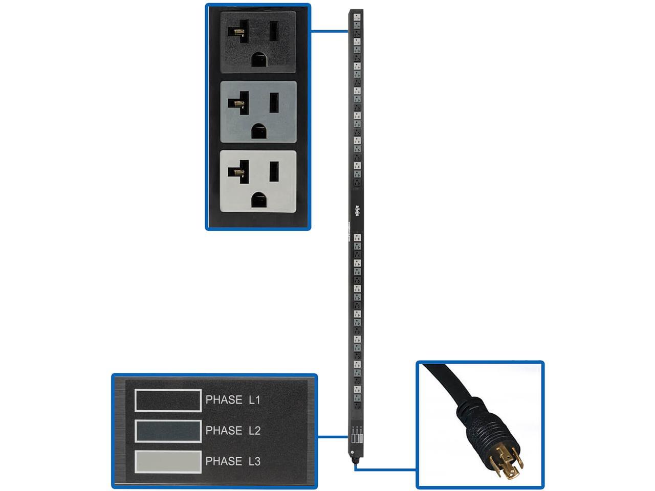 Tripp Lite 5.7kW 3-Phase Basic PDU - 42 NEMA 5-15/20R 120V Outlets, 208V L21-20P Input, 6 ft. Cord, 70 in. 0U Rack, TAA (PDU3V6L2120LV)