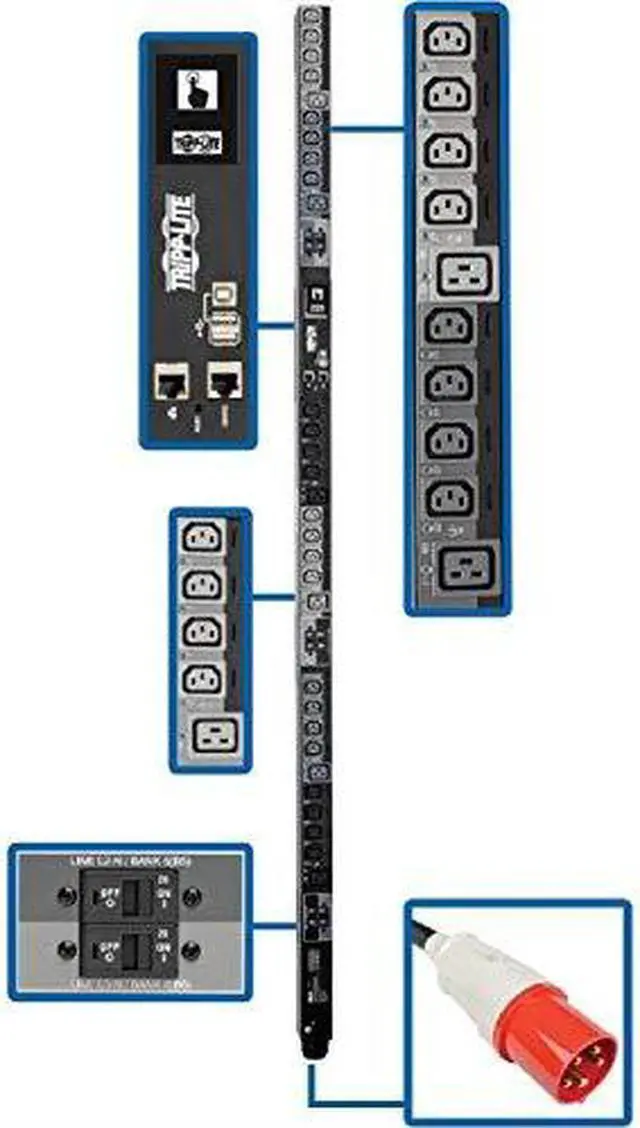 28.8 kW 220-240V 3PH Switched PDU - LX Interface, Gigabit, 30 Outlets, IEC 309 63A Red 380-415V Input, LCD, 1.8 m Cord, 0U 1.8 m Height, TAA PDU3XEVSR6G63B
