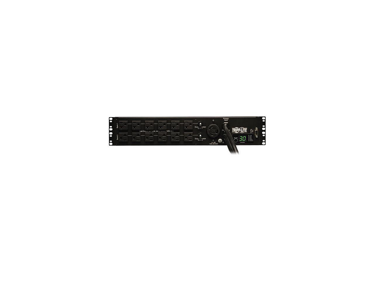 Tripp Lite Metered PDU with ATS, 2.9 kW Single-Phase 120V Outlets (24 x 5-15/20R, 1 x L5-30R), 2 x L5-30P, 2 x 10 Feet Cords, 2U Rack-Mount, TAA (PDUMH30AT)