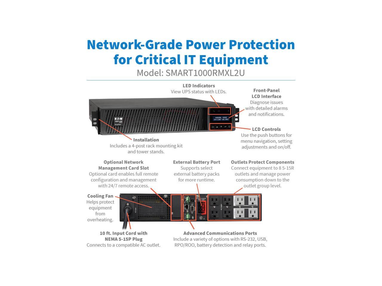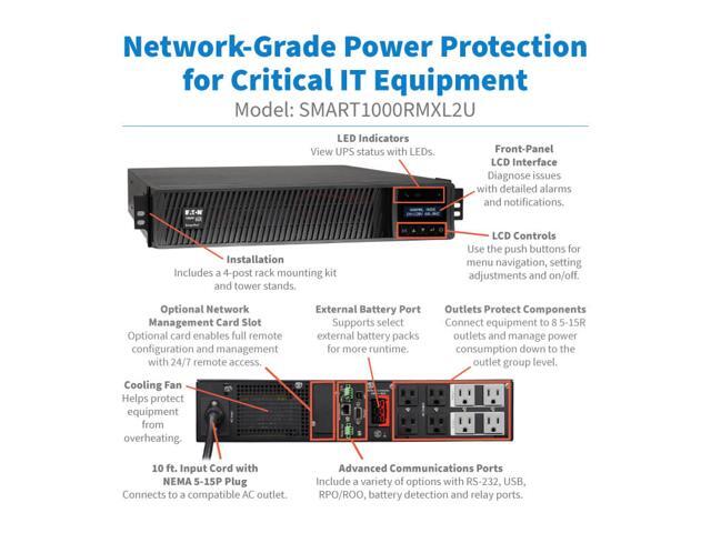 Tripp Lite 1500VA Smart UPS Back Up, Sine Wave, 1350W Line-Interactive, 2U Rackmount (SMART1500RMXL2UA) - OEM