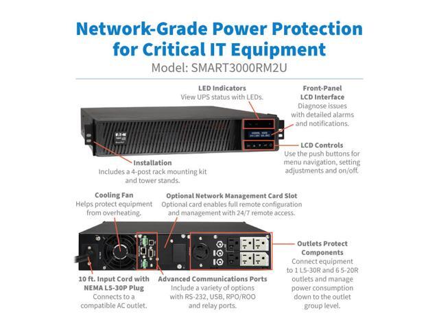 Tripp Lite series SmartPro 3000VA 3000W 120V Line-Interactive Sine Wave UPS - 7 Outlets, Network Card Option, LCD, USB, DB9, 2U Rack/Tower (SMART3000RM2U)